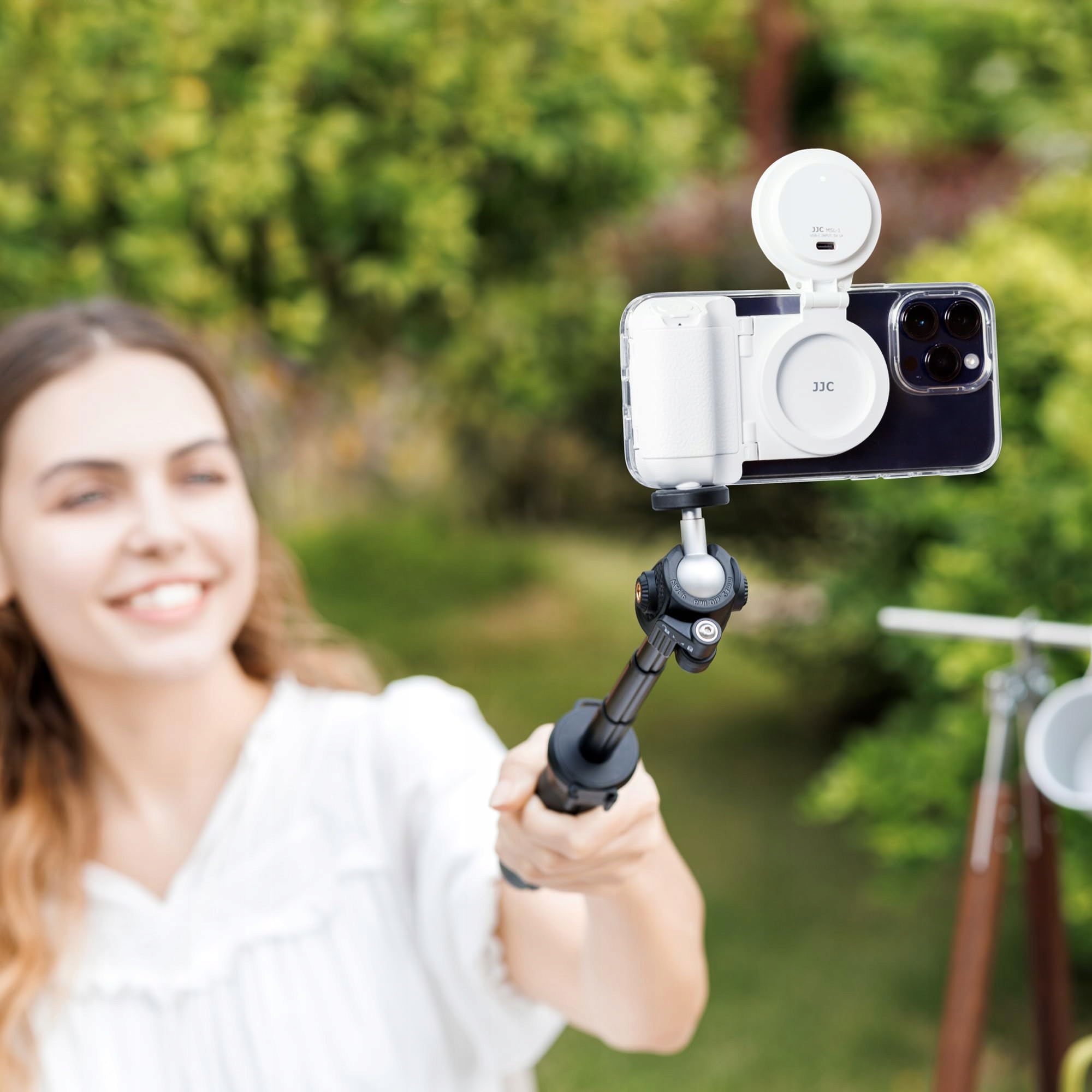 JJC Magnetyczne LED-światło do selfie z lustrem do telefonu z 3 ustawieniami jasności – mocuje się na telefonie, składana konstrukcja, ładowanie typu C dla iPhone 16 15, 14, 13
