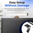 Łatwe ustawienie i usunięcie: lampa monitorowa lub laptopowa znajduje się na górze ekranu z podstawą w stylu kamery internetowej. Jest przeznaczona do użytku stacjonarnego i nie używa zawodnych przyssawek ani szkodliwego kleju tylko do lampy wideo komputerowej. Najpierw ustaw swoją kamerę, a następnie dodaj lampy monitorowe.
