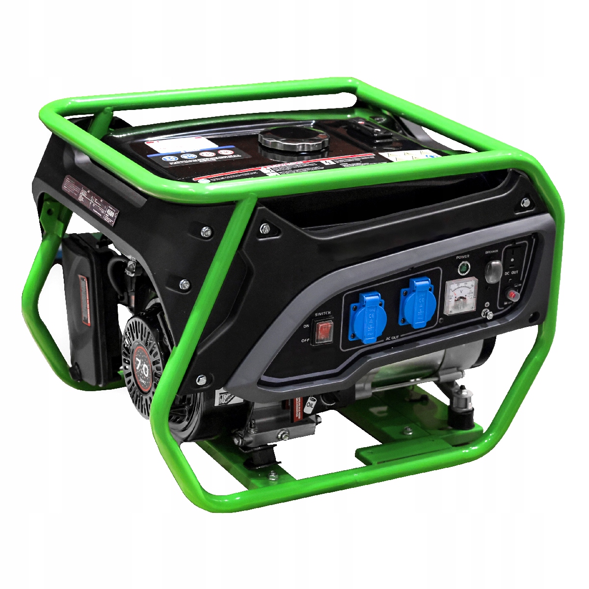 Agregat WEBER ENERGY 2500 с мощностью 7 л. с. при 3600 об / мин, благодаря которой он производит непрерывную полезную мощность на уровне 2 кВт и максимум на уровне 2,2 кВт. Он оснащен двумя розетками на 230 В и ручным стартер.