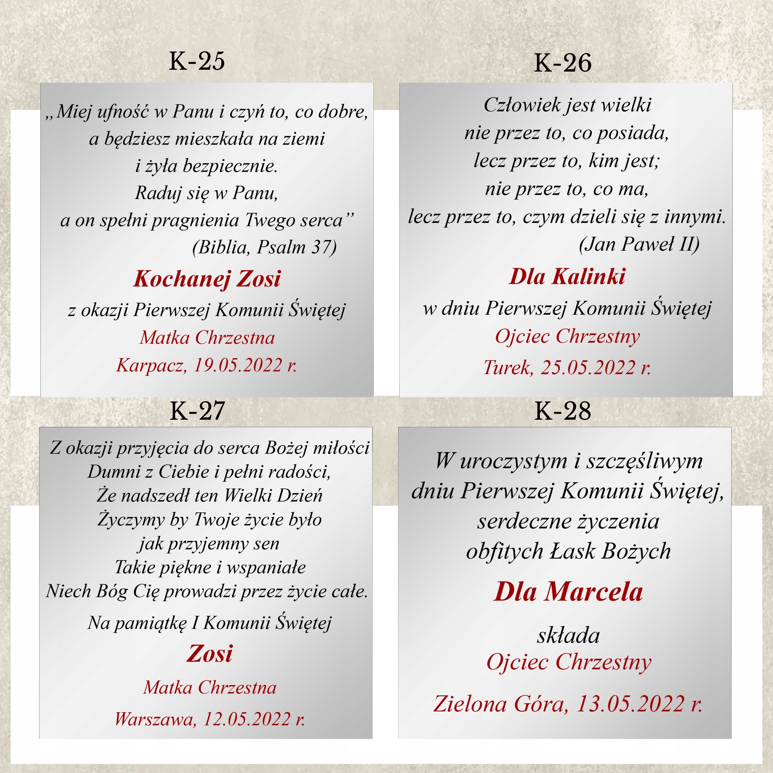 Dane do personalizacji, zgodnie z powyższym wzorem, prosimy przesłać w uwagach do zamówienia lub w "zadaj pytanie" w ofercie.