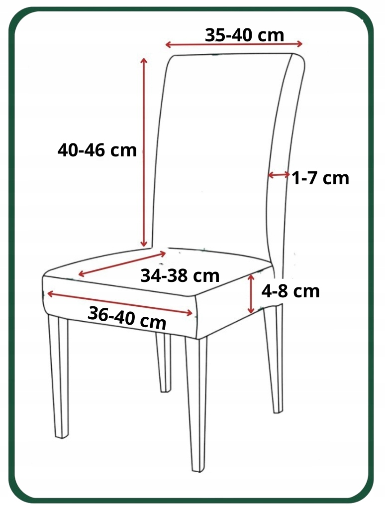 На графике рядом находятся размеры стульев на что подходит наш чехол. Если у вас есть - 2 см больше/меньше стул-наш чехол по-прежнему подойдет!