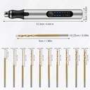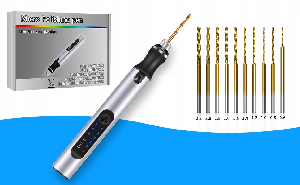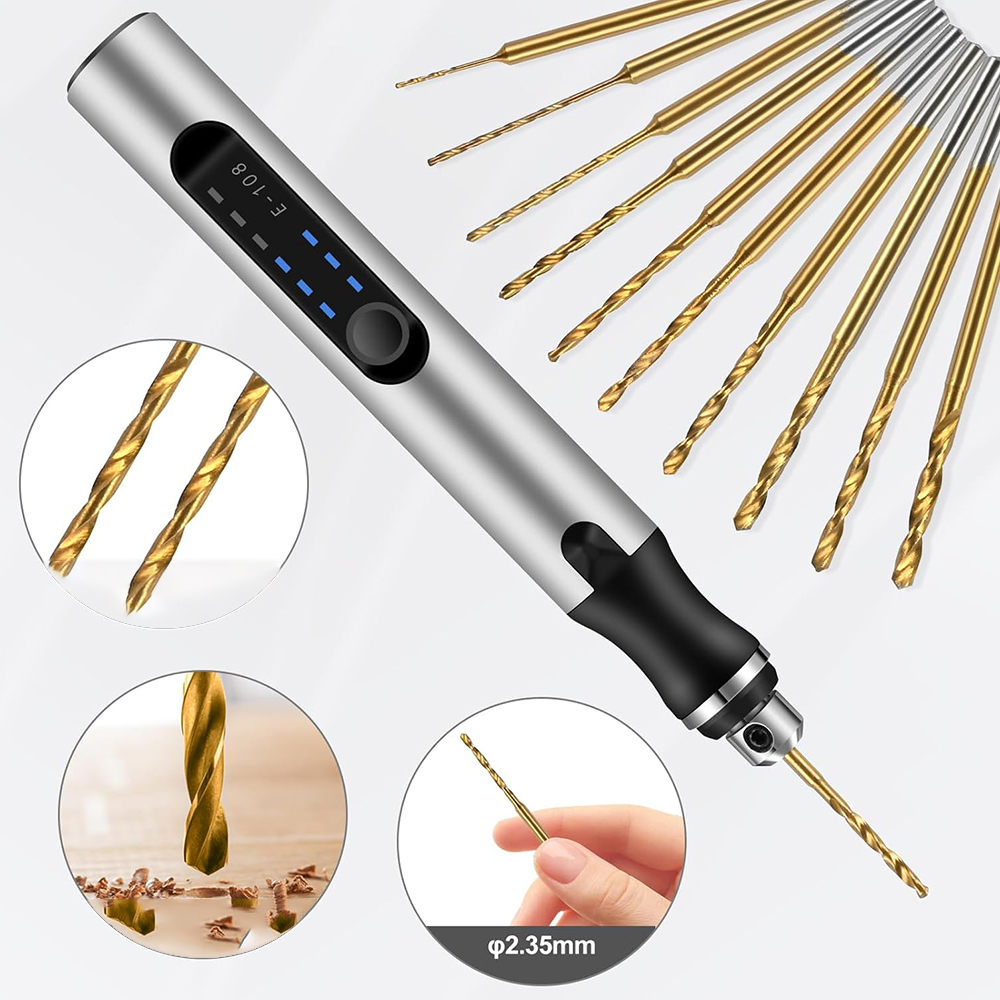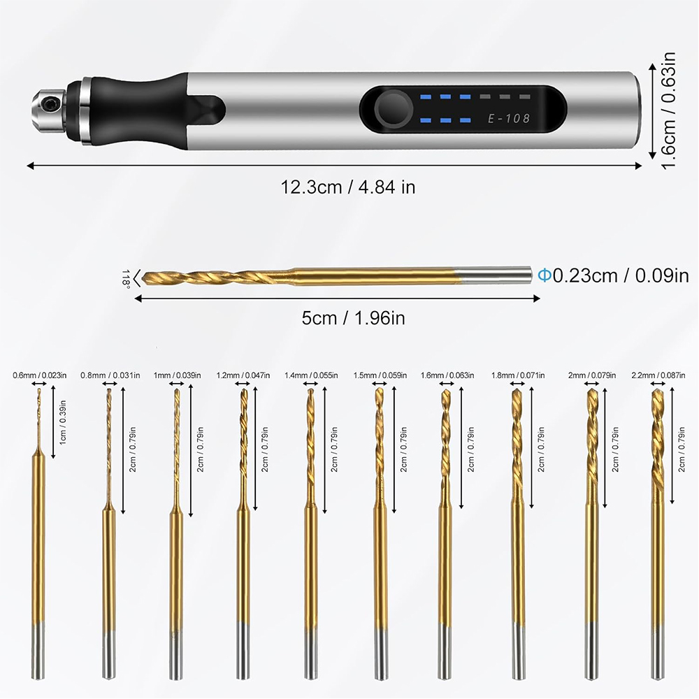 Zestaw zawiera 10 wierteł o różnych rozmiarach (0,6, 0,8, 1,0, 1,2, 1,4, 1,5, 1,6, 1,8, 2,0, 2,2 mm) wykonanych z wysokiej jakości stali szybkotnącej HSS, które są szczególnie twarde i trwałe. Dzięki tej ręcznej wiertarce do drewna możesz tworzyć wyjątkowe drewniane dzieła sztuki lub biżuterię, takie jak drewniane znaki, figurki, bransoletki, naszyjniki i breloki, i wyrażać swoją kreatywność.