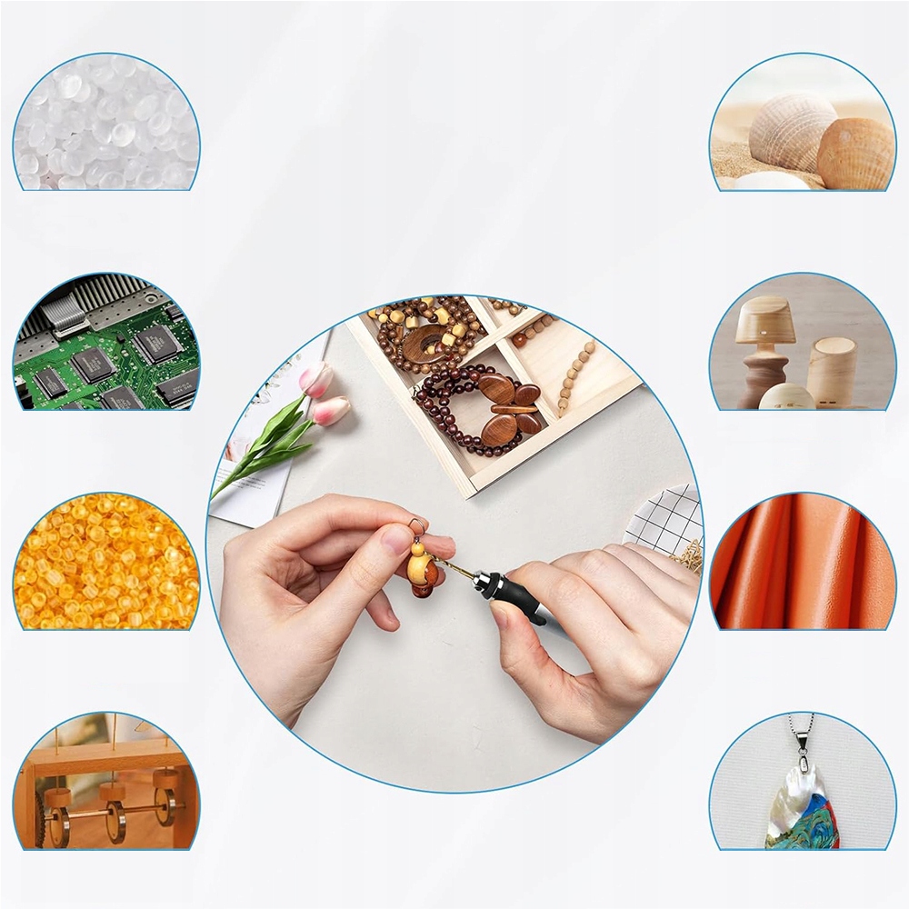 Specjalnie zaprojektowana dla entuzjastów majsterkowania, ta mini wiertarka idealnie nadaje się do personalizacji wyrobów z drewna, szklanych dekoracji, biżuterii i nie tylko. Przemyślany prezent dla rzemieślników, artystów i każdego, kto lubi tworzyć niepowtarzalne, rękodzielnicze wzory.