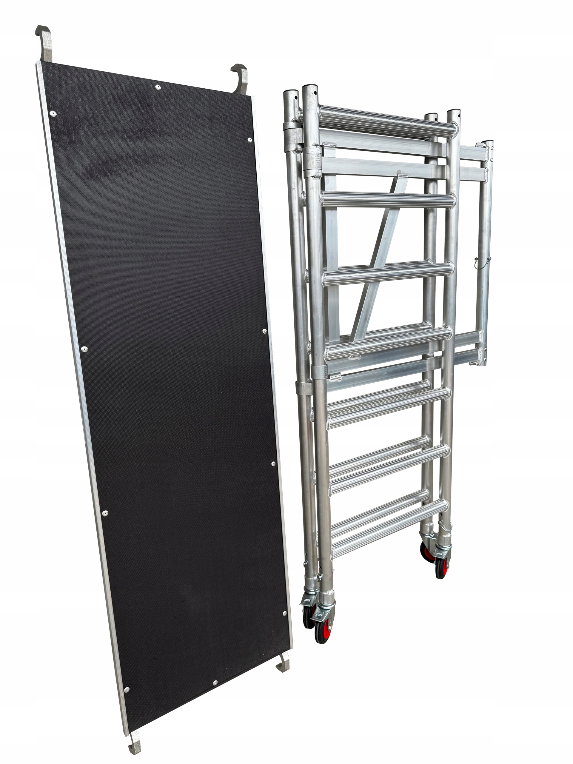 Wysokogatunkowe aluminium gwarantuje trwałość i odporność na korozję, a jednocześnie ułatwia transport i przenoszenie rusztowania – nawet przez jedną osobę.