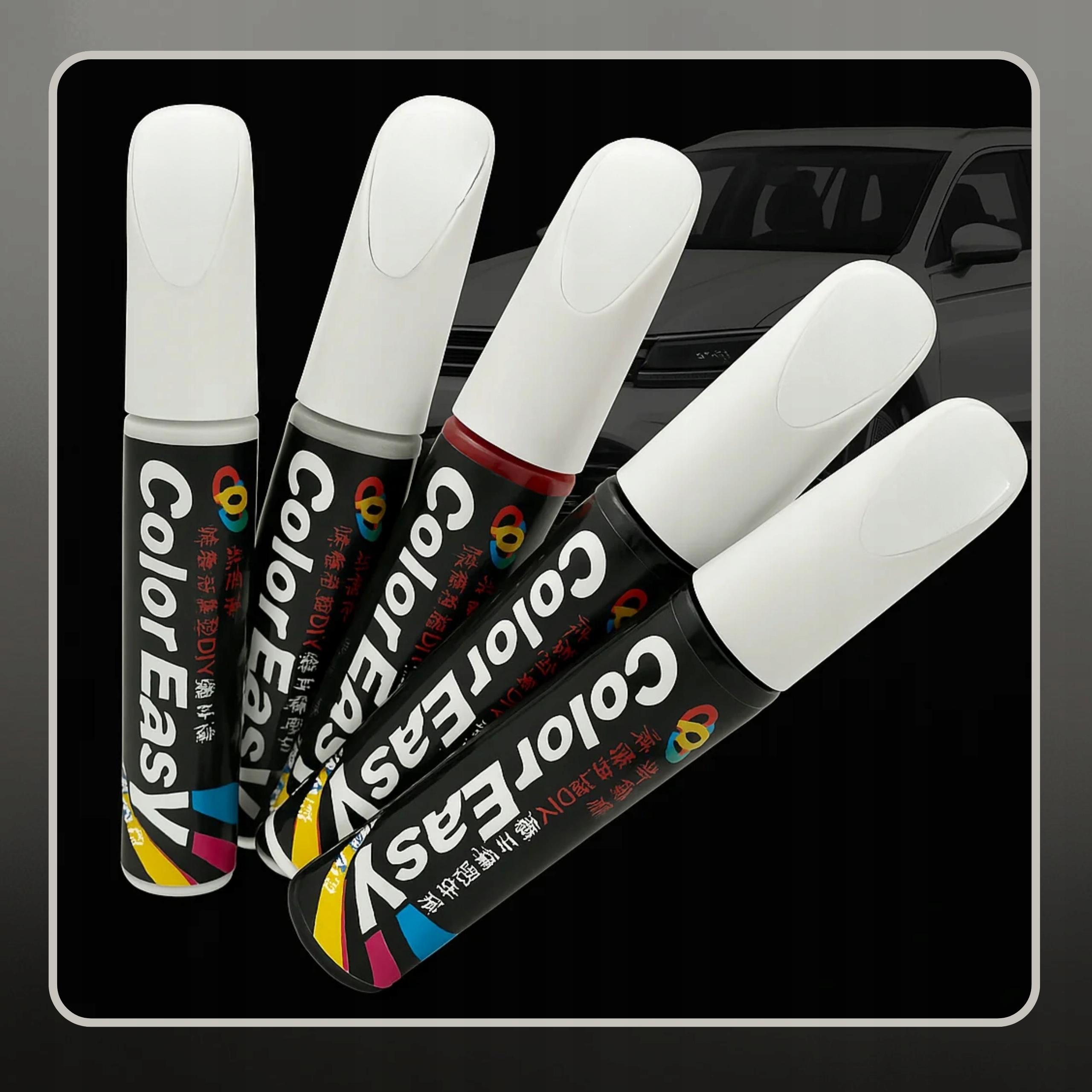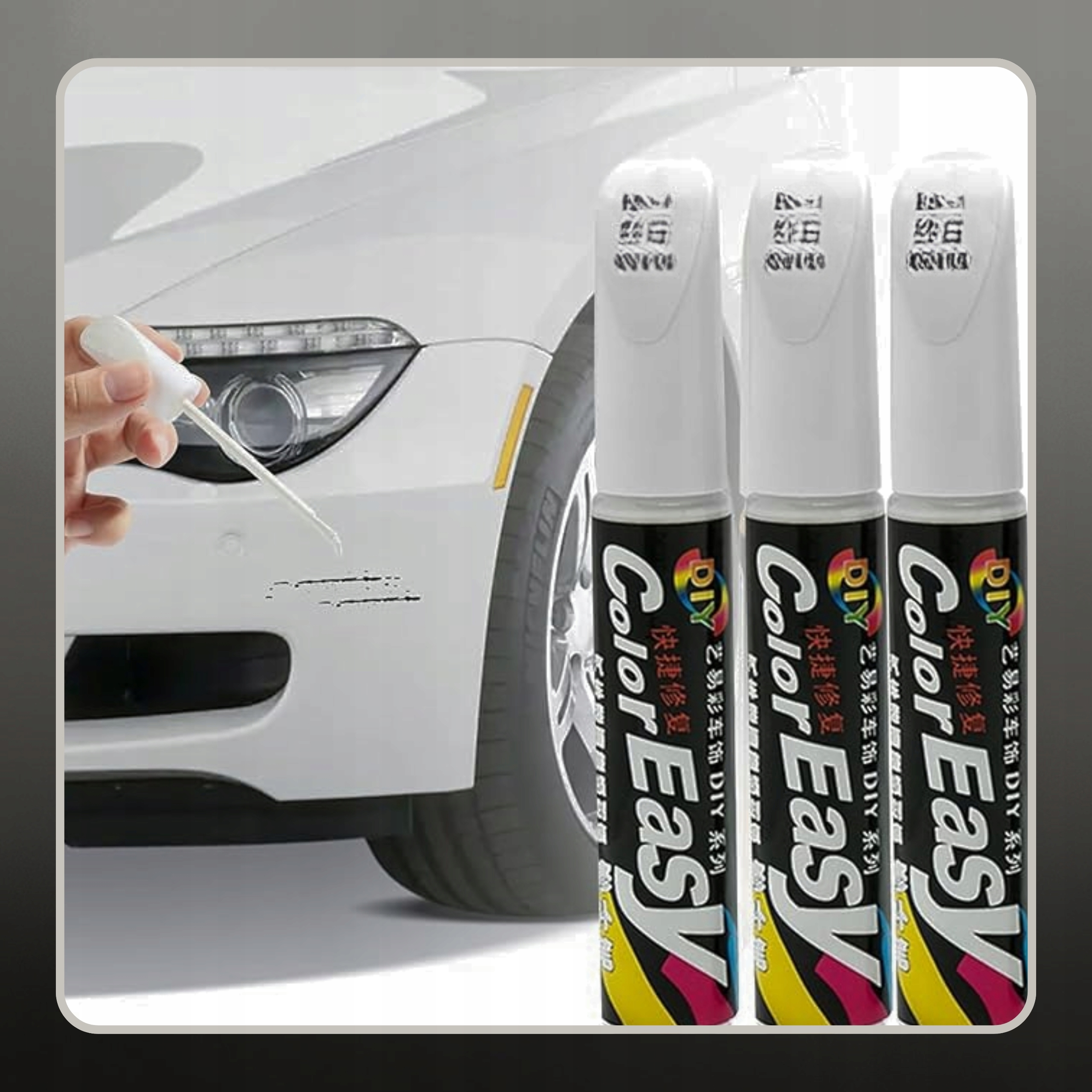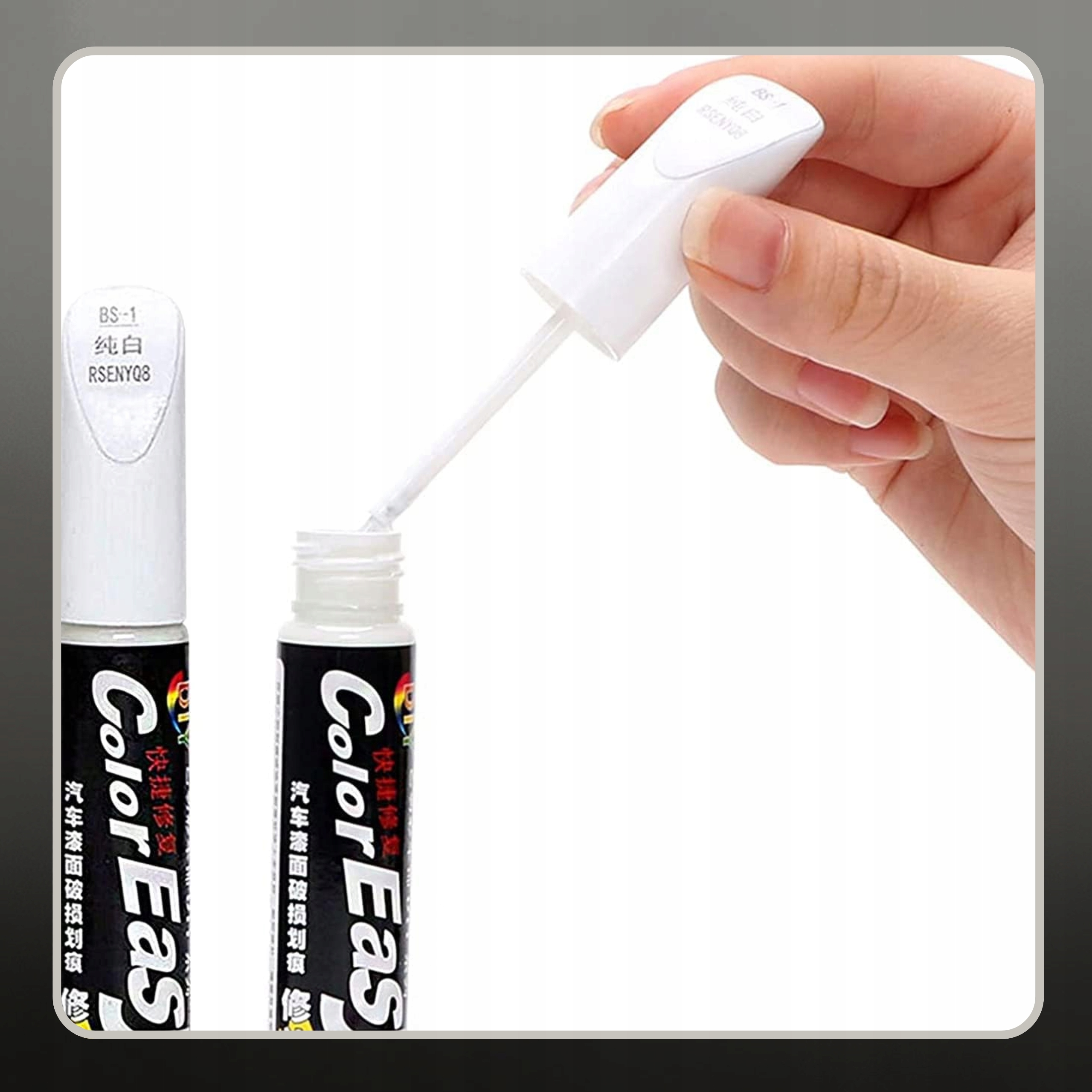 ✅ Jak działa? Wystarczy potrząsnąć pisakiem, przycisnąć końcówkę i nanieść warstwę lakieru na zarysowanie – rysa znika w kilka sekund!