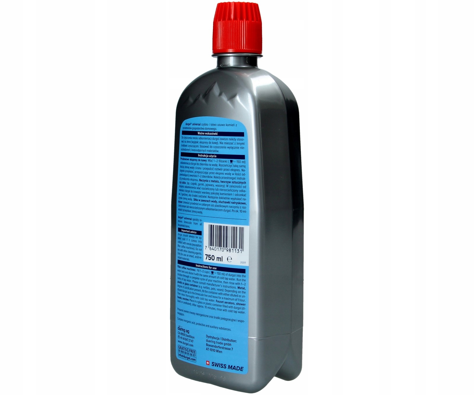 Durgol Universal Power 750ml to niezawodny, szwajcarski odkamieniacz przeznaczony do skutecznego usuwania kamienia z ekspresów do kawy, czajników, garnków, zlewozmywaków i innych urządzeń AGD. Stworzony z myślą o maksymalnej wydajności i bezpieczeństwie, gwarantuje perfekcyjne rezultaty bez uszkadzania powierzchni.