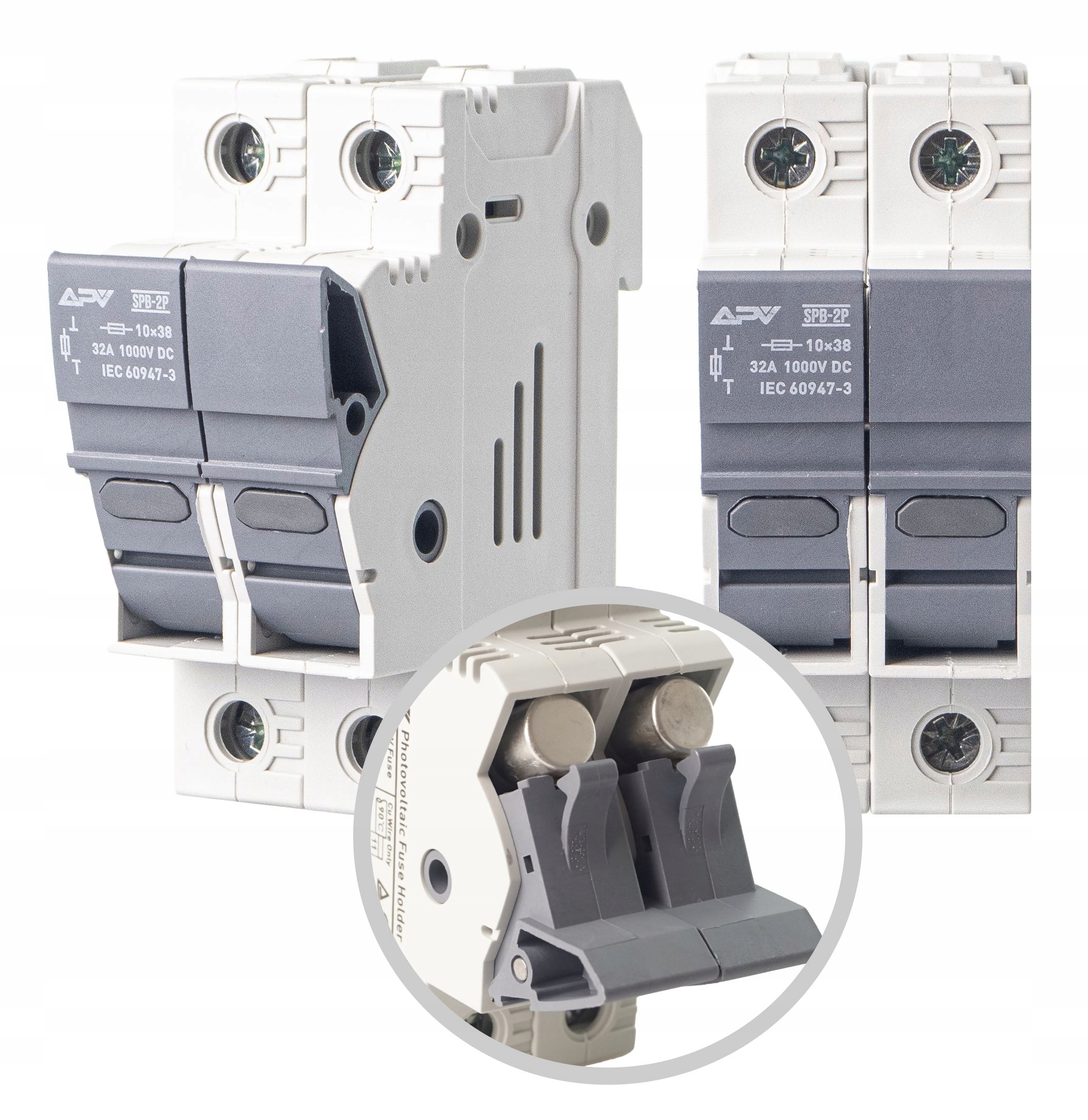 Podstawa bezpiecznikowa wyposażona w dwie wkładki topikowe gPV. Do zastosowania w systemach fotowoltaicznych.