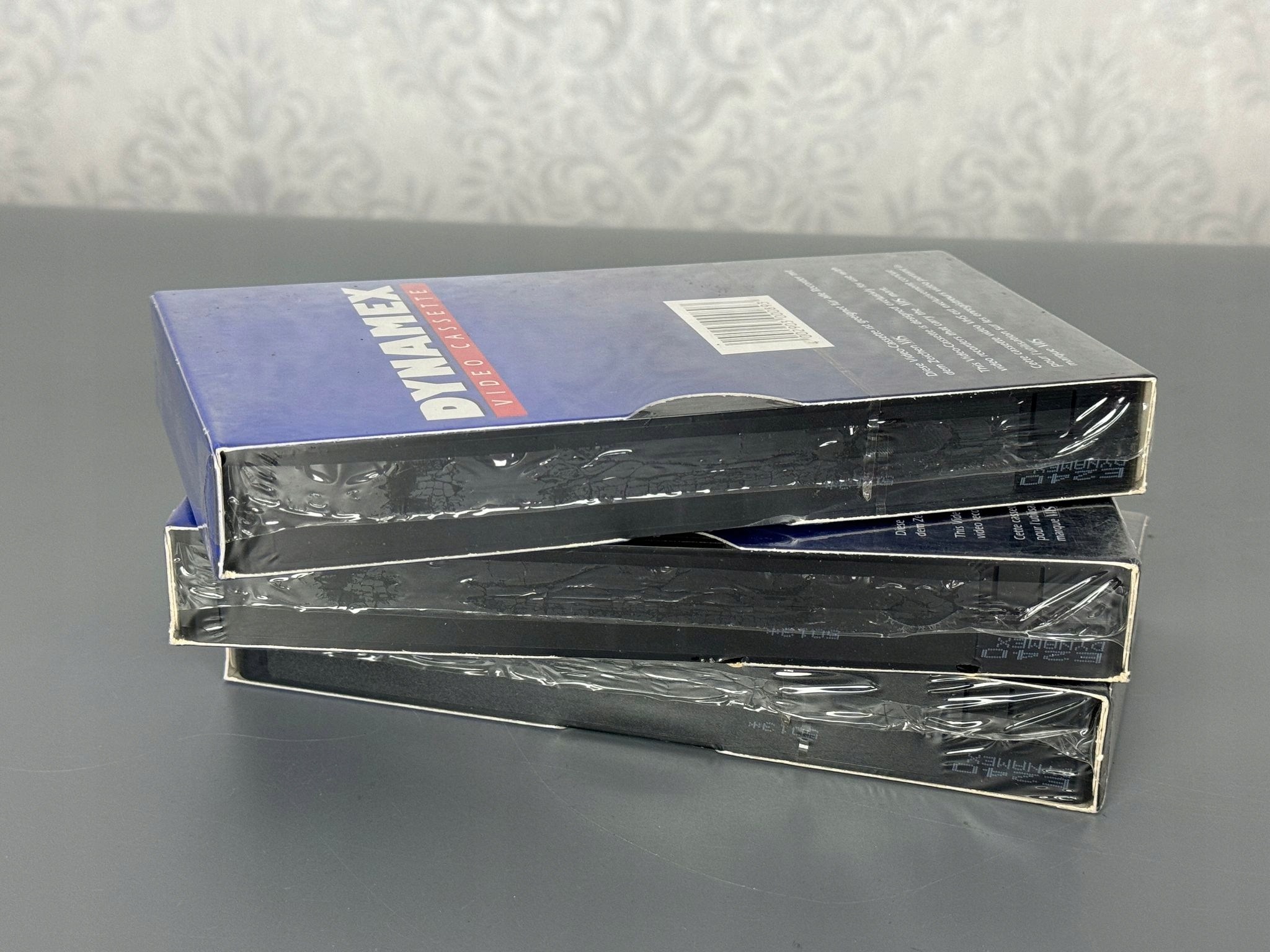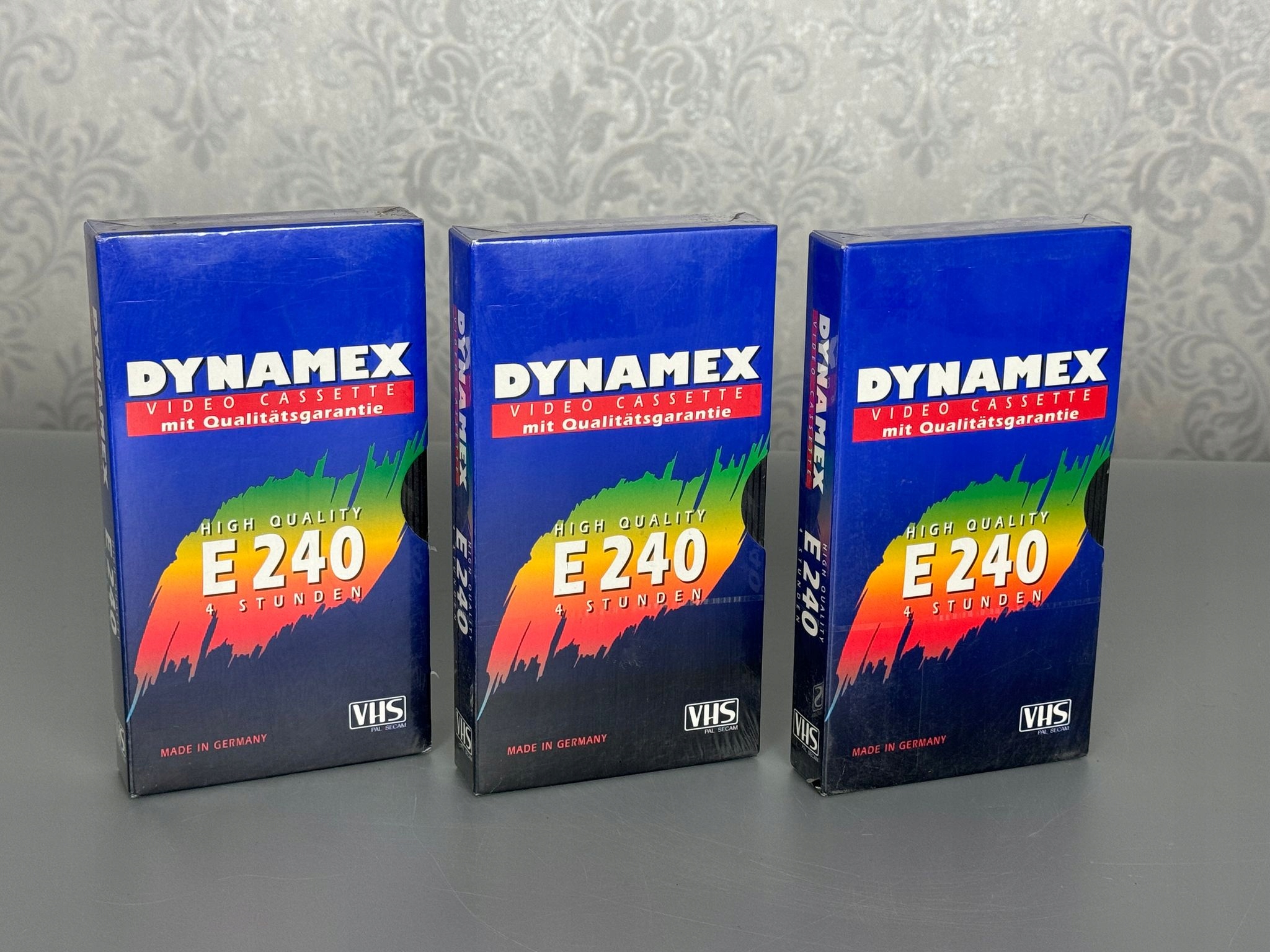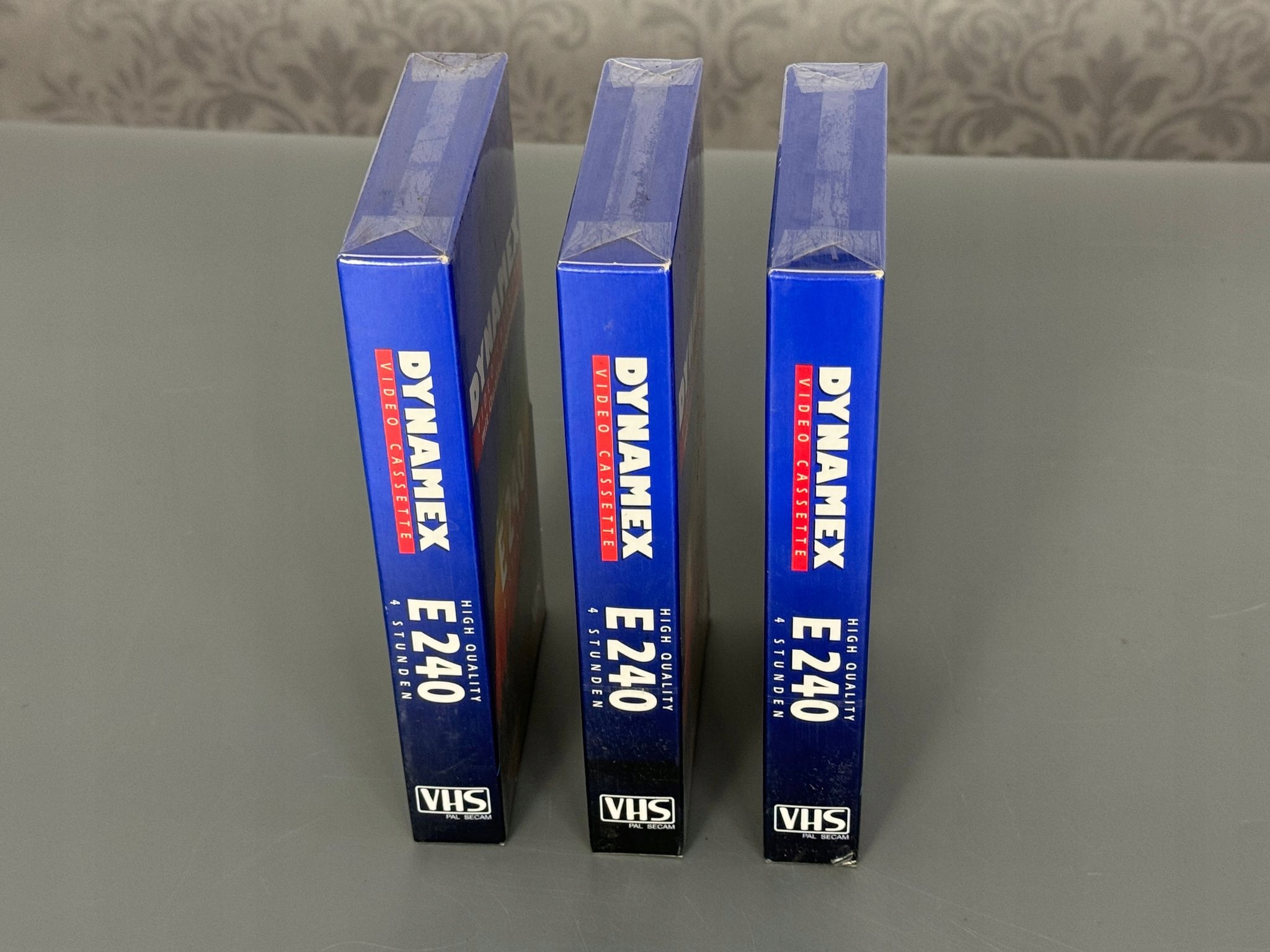 Nigdy nieotwarte kasety video do nagrywania na odpowiednich magnetowidach. Wciąż mają oryginalną folię sklepową, więc mogą zarówno posłużyć do ustawienia na półce jak i do aktywnego użytku.