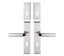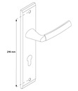 Maksymalna grubość drzwi zewnętrznych do których można zamontować klamkę korzystając z zestawu montażowego to 72 mm, grubość szyldu wynosi 10 mm.