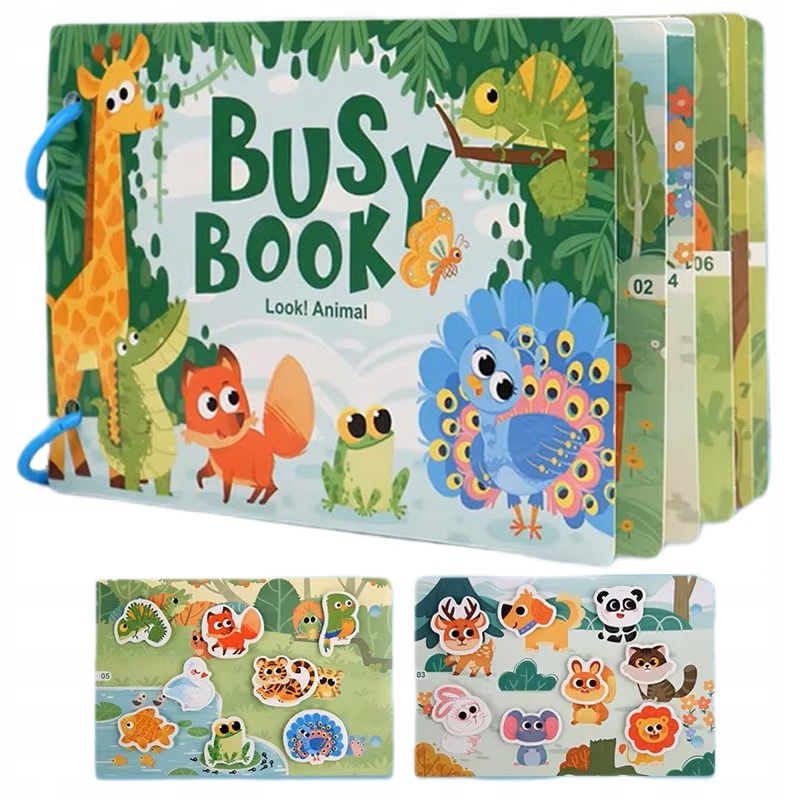 Kolorowa i angażująca busy book to idealna zabawka wspierająca rozwój malucha poprzez zabawę. Ta wyjątkowa książeczka sensoryczna zawiera różnorodne kształty zwierzątek, które dziecko może doczepiać i odczepiać za pomocą rzepów, ćwicząc przy tym zręczność, koncentrację i koordynację ręka–oko.