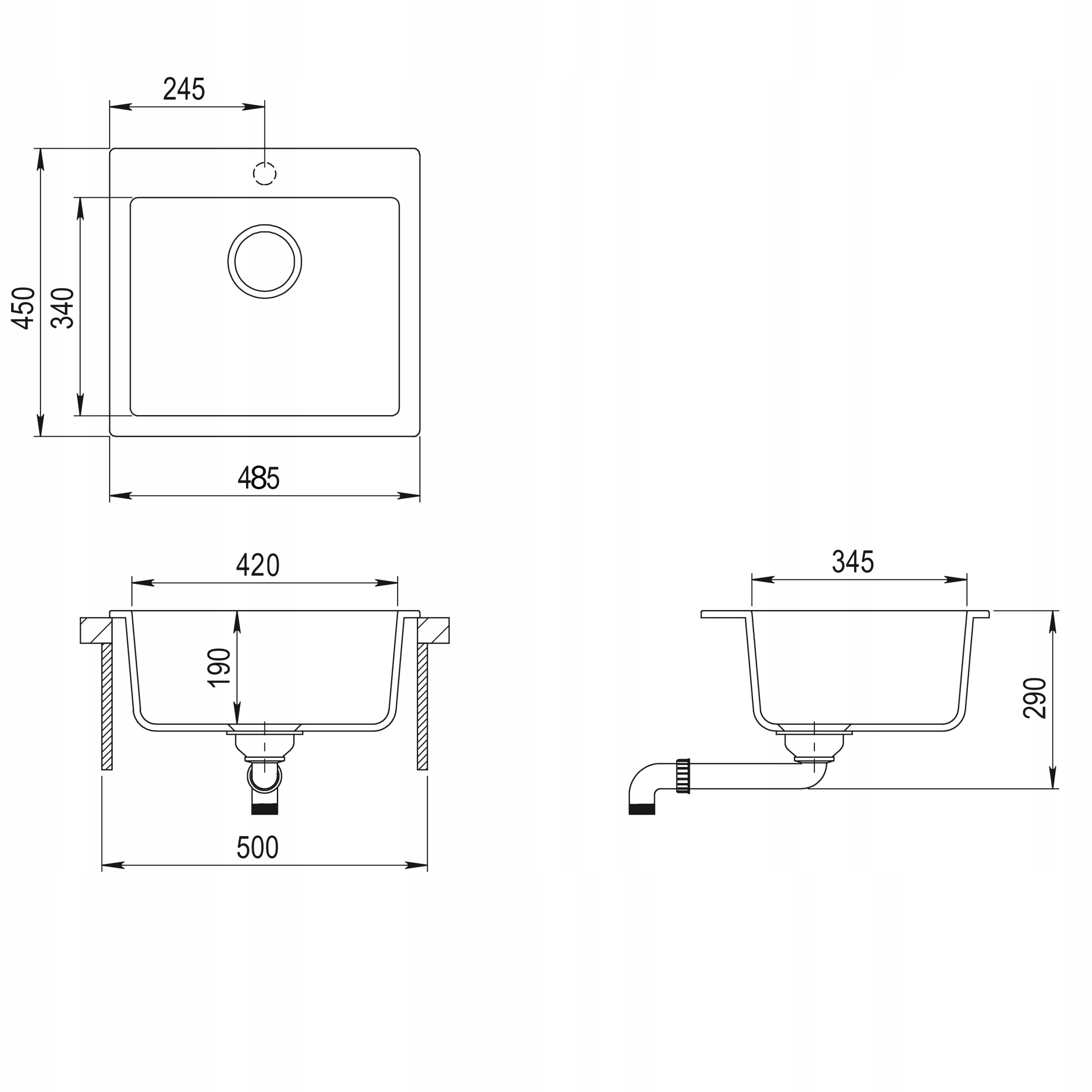 ► Syfon: manualny z możliwością podłączenia zmywarki