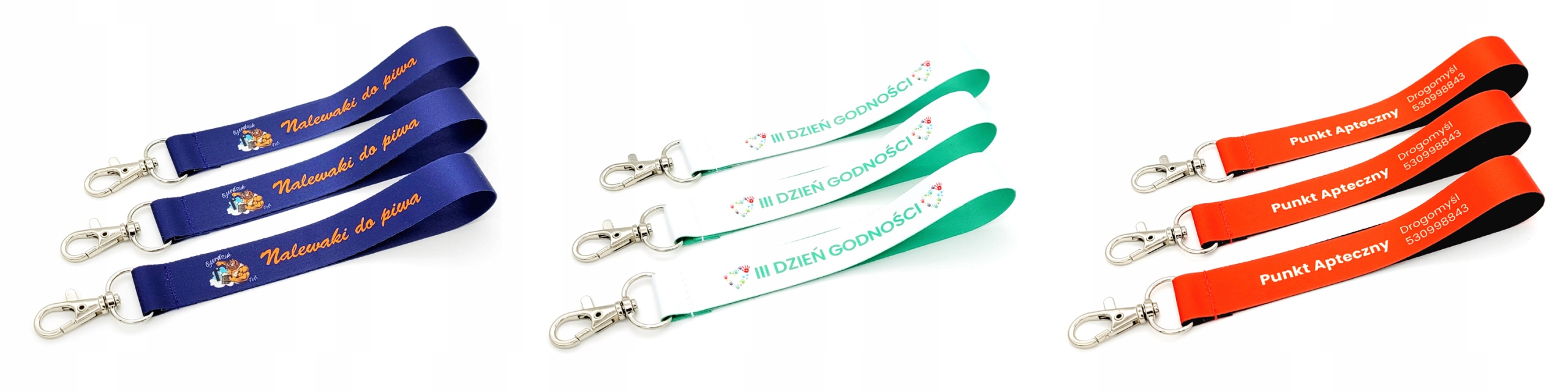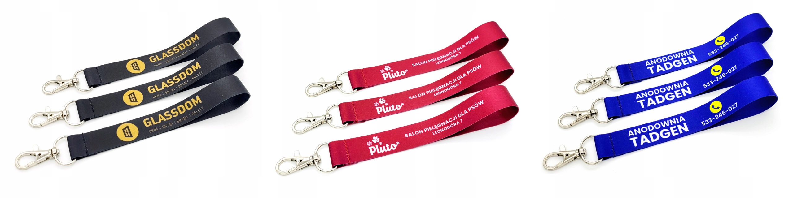 Breloki poliestrowe do kluczy, tzw. "smycze reklamowe krótkie" z nadrukiem dwustronnym, wykonane z gładkiego poliestru, o szerokości taśmy 20mm. Nasze breloki cechuje najwyższa jakość wykonania, z dbałością o każdy detal Państwa logotypu. Każdy brelok wyposażony jest w metalowy karabińczyk, a sama taśma wykończona jest szyciem.