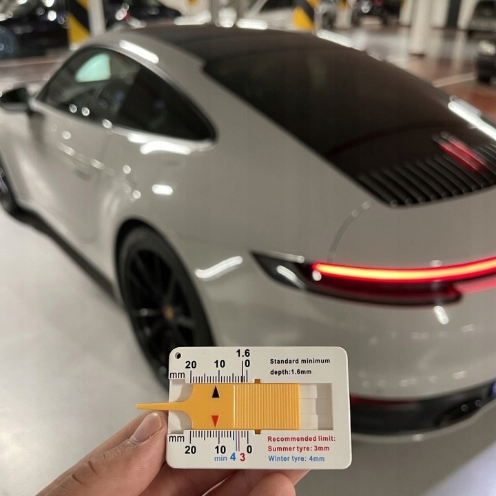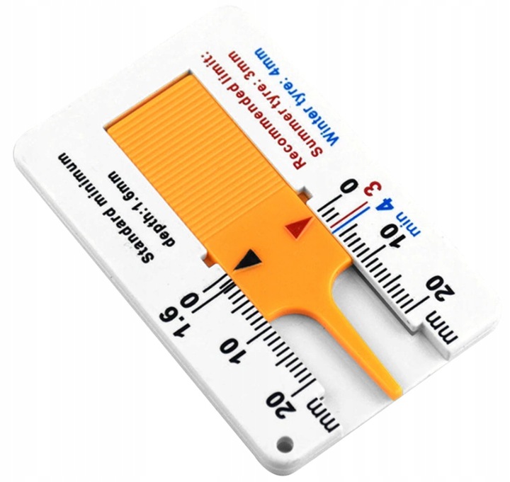 Miernik głębokości bieżnika, którego prosta budowa sprawia, że pomiar jest niezwykle łatwy. Dzięki czytelnej skali oraz antypoślizgowej powierzchni miarki wynik jest dokładny i wyraźnie widoczny.