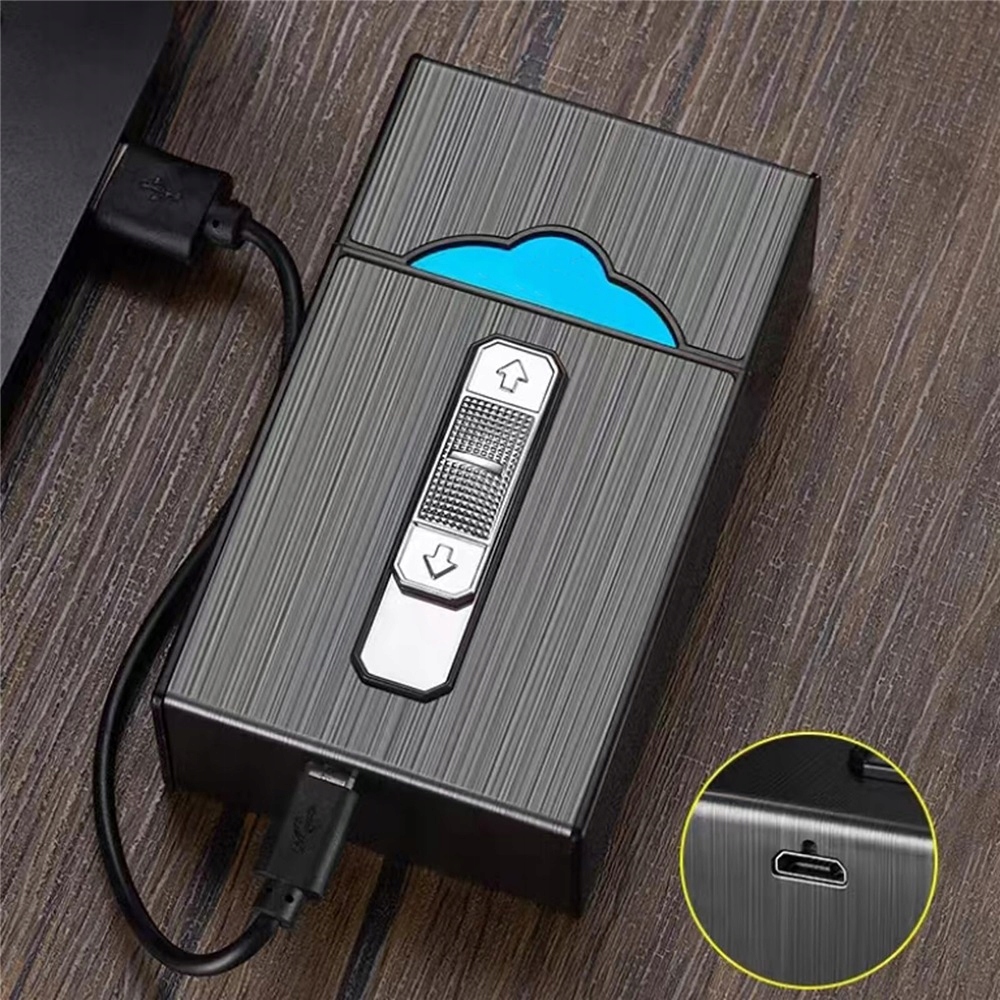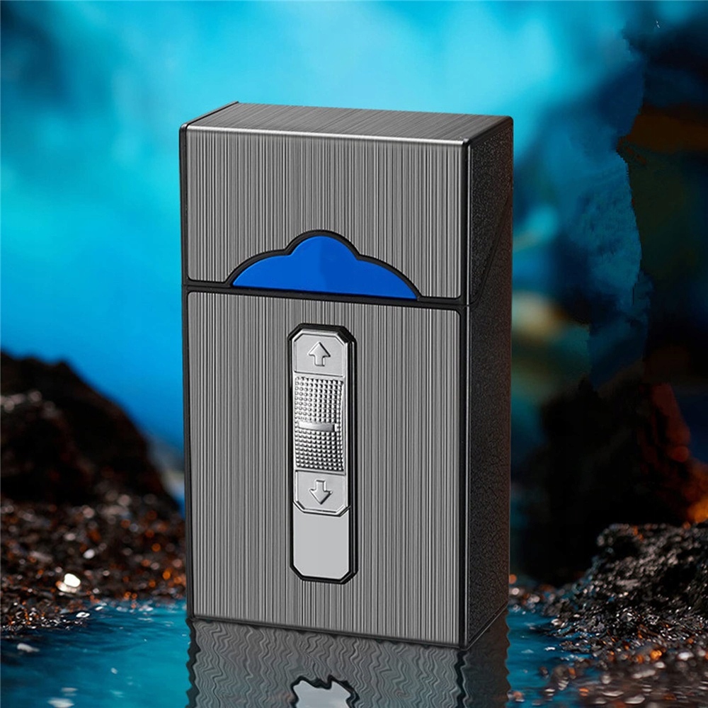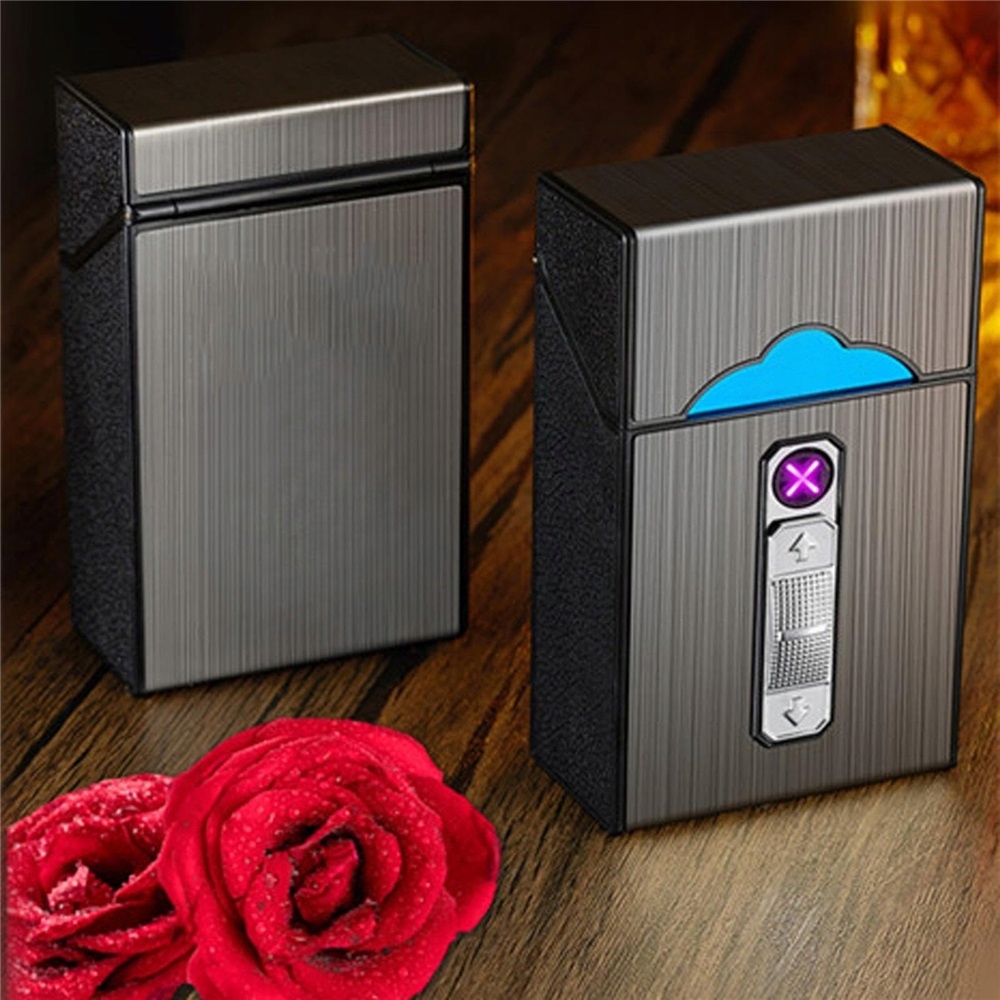 NOWOCZESNE WIELOFUNKCYJNE ETUI NA PAPIEROSY 20 SZTUK Z INTEGROWANĄ IMPULSOWĄ ZAPALNICZKĄ USB - CIENKA PAPIEROŚNICA Z BEZPŁOMIENIOWYM ZAPŁONEM, WYRÓŻNIAJĄCA SIĘ SMUKŁYM DESIGNEM I ŁATWYM ŁADOWANIEM PRZEZ USB. IDEALNE DO PODRÓŻY, GWARANTUJE BEZPIECZNE UŻYTKOWANIE ORAZ WYGODNE PRZECHOWYWANIE PAPIEROSÓW W ELEKTRYCZNYM SYSTEMIE ZAPALAJĄCYM.