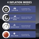 Inteligentne tryby: przenośna akumulatorowa pompka powietrza rowerowa ma 4 inteligentne tryby, aby sprostać różnym potrzebom w zakresie pompowania.