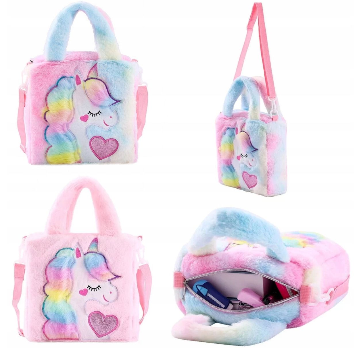Oto ona – torebka z motywem jednorożca! Wykonana z puszystego, miękkiego materiału, który jest przyjemny w dotyku i wygląda zachwycająco!