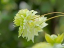 Клематис 'Manju' - уникальный сорт с оригинальными, полными цветки, которые меняют свой цвет во время цветения. Первоначально лаймовый, со временем они становятся белоснежными, что создает тонкий и элегантный эффект. Цветки достигают 8-12 см в диаметре, имеют слегка волнистые лепестки и появляются на растении с июня по сентябрь, наслаждаясь своей красотой долгое время. Этот клематис вырастает до 1,5-2 метров Высота, что делает его отличным выбором для посадки различных садовых опор.