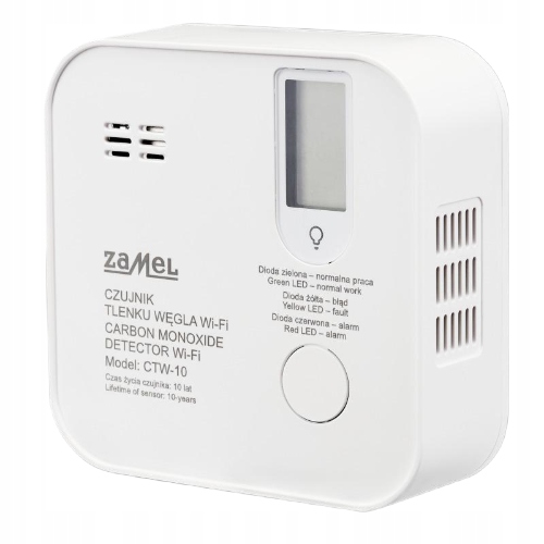Czujnik CTW-10 służy do ciągłego monitorowania niebezpiecznego stężenia tlenku węgla w powietrzu. W momencie wykrycia zagrożenia czujnik uruchamia głośny sygnał dźwiękowy (min. 85 dB) oraz optyczny w postaci migającej diody. Wyposażony jest w precyzyjny i niezawodny czujnik elektrochemiczny o żywotności 10 lat. Czujnik może pracować niezależnie ale dzięki wbudowanemu Wi-Fi i darmowej aplikacji TUYA można uzyskać zdalny dostęp do czujnika na telefonach i tabletach z systemem Android lub iOS. Dzięki temu w razie wystąpienia alarmu użytkownik otrzyma powiadomienie o tym fakcie na swoim telefonie nawet jeżeli będzie z dala od miejsca instalacji czujnika np. w pracy lub na wczasach na drugim końcu świata (warunek to łączność telefonu z internetem).