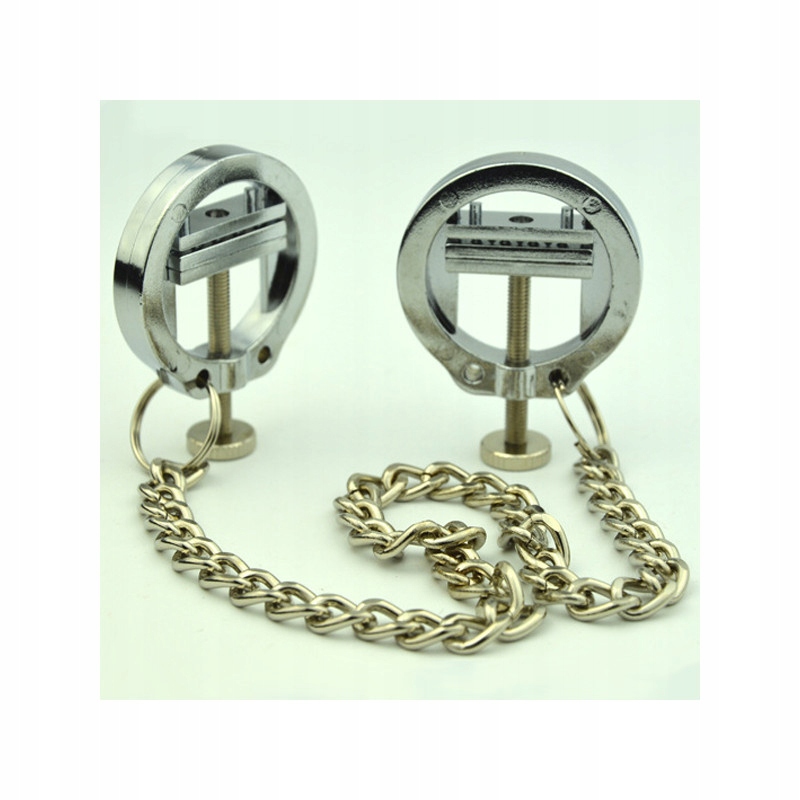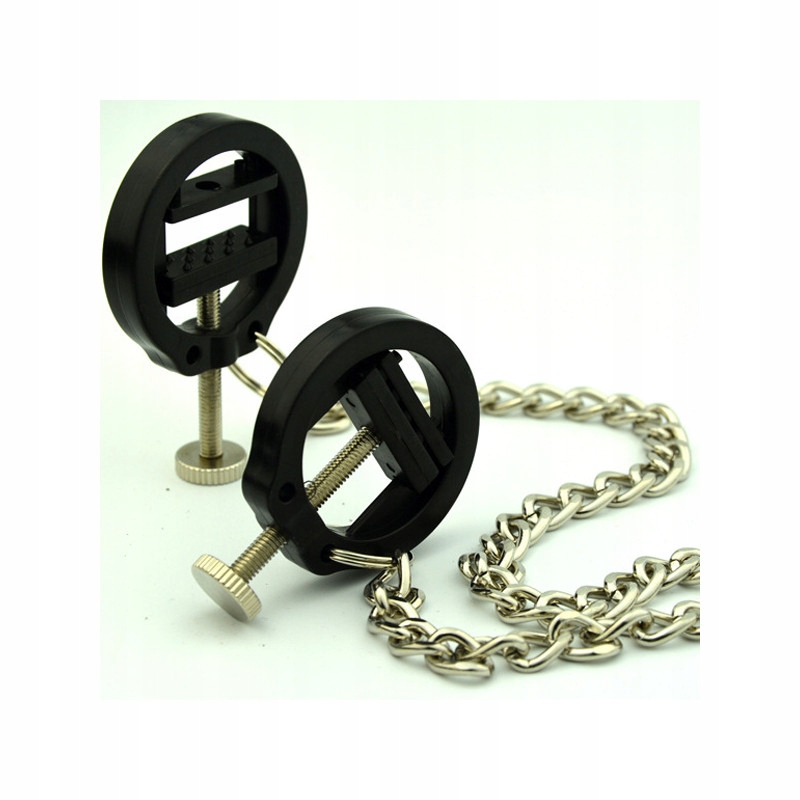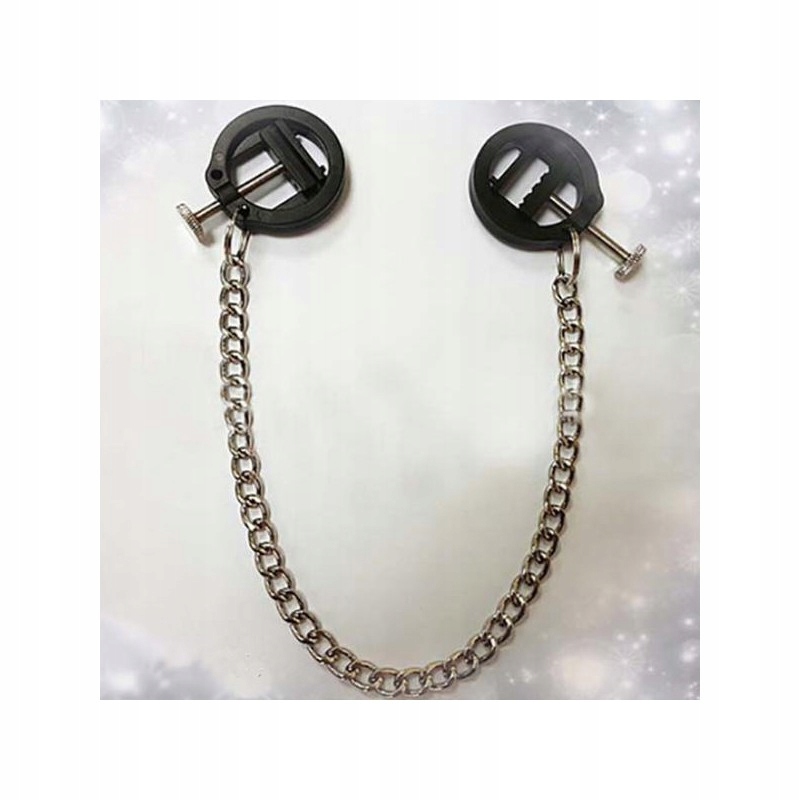 BDSM metalowe regulowane zaciski / kruszarki / z wypustkami na sutki piersi z łańcuszkiem dla mężczyzn i kobietekskluzywna konstrukcja z regulowaną siłą naciskaniaten produkt należy przyjmować wyłącznie za zgodą partnera uważaj, aby nie zaszkodzić zdrowiu