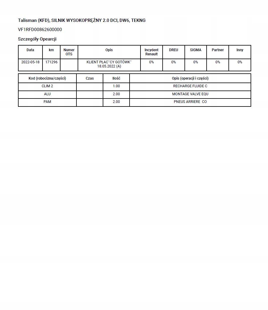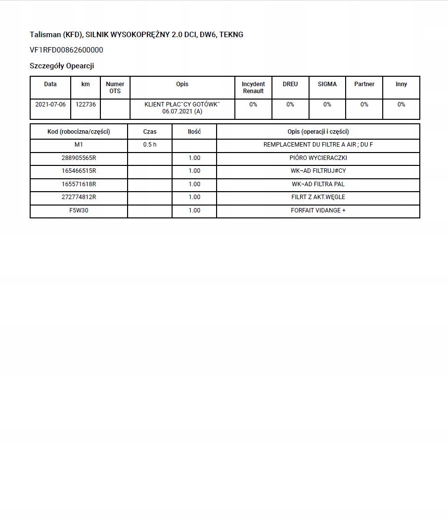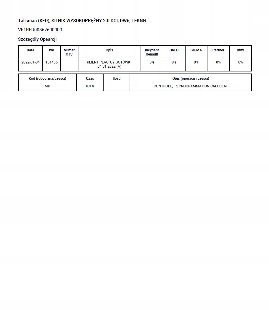 Название RENAULT VIN Historia Serwisowa ASO - Sprawdzenie 7/7 - Szybka dostawa