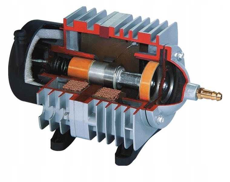 Charakteryzuje się wysoką wydajnością i dużą mocą sprężania, co umożliwia efektywną pracę nawet na dużych głębokościach. Żaden z elementów pompy nie jest oliwiony więc tłoczone powietrze jest czyste i bezpieczne dla organizmów wodnych. Korpus z radiatorem wykonany ze stopu aluminium ZL102, dzięki czemu urządzenie nie przegrzewa się i może pracować nieustannie bez wahań wydajności. Obudowa posiada uchwyt ułatwiający przenoszenie urządzenia. Tłok i cylinder wykonane z termoplastycznego tworzywa zwiększającego żywotność pompy i obniżającego zużycie energii.