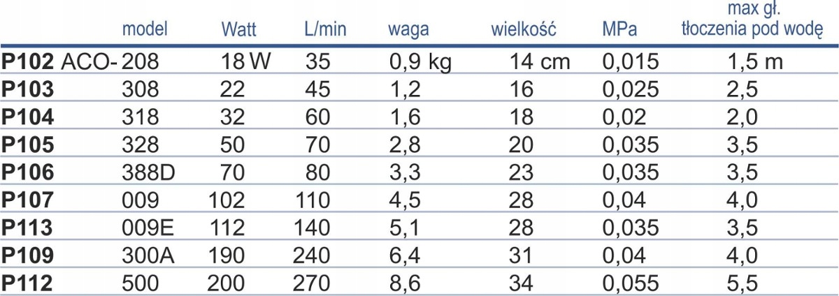 Max głebokość tłoczenia pod wodą: 1,5 m