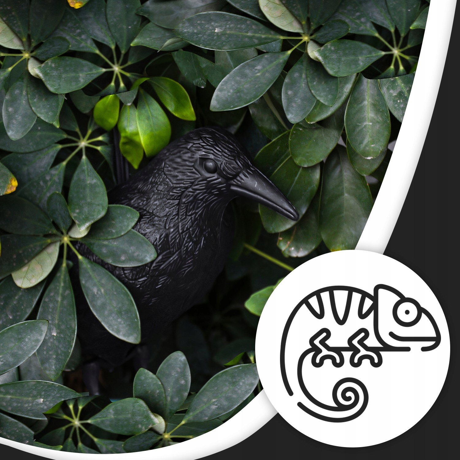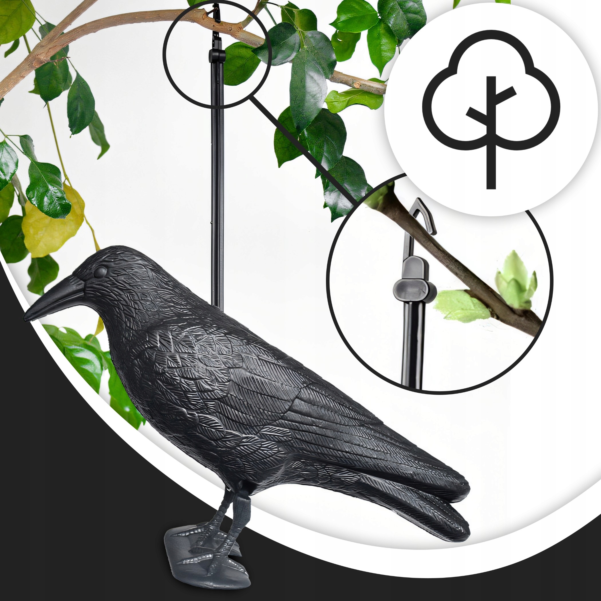 Dzięki swoim realistycznym wymiarom oraz wykorzystaniu modelu kruka, ta figura pełni funkcję nie tylko dekoracyjną, ale również skutecznego odstraszacza dla innych zwierząt oraz szkodników.
