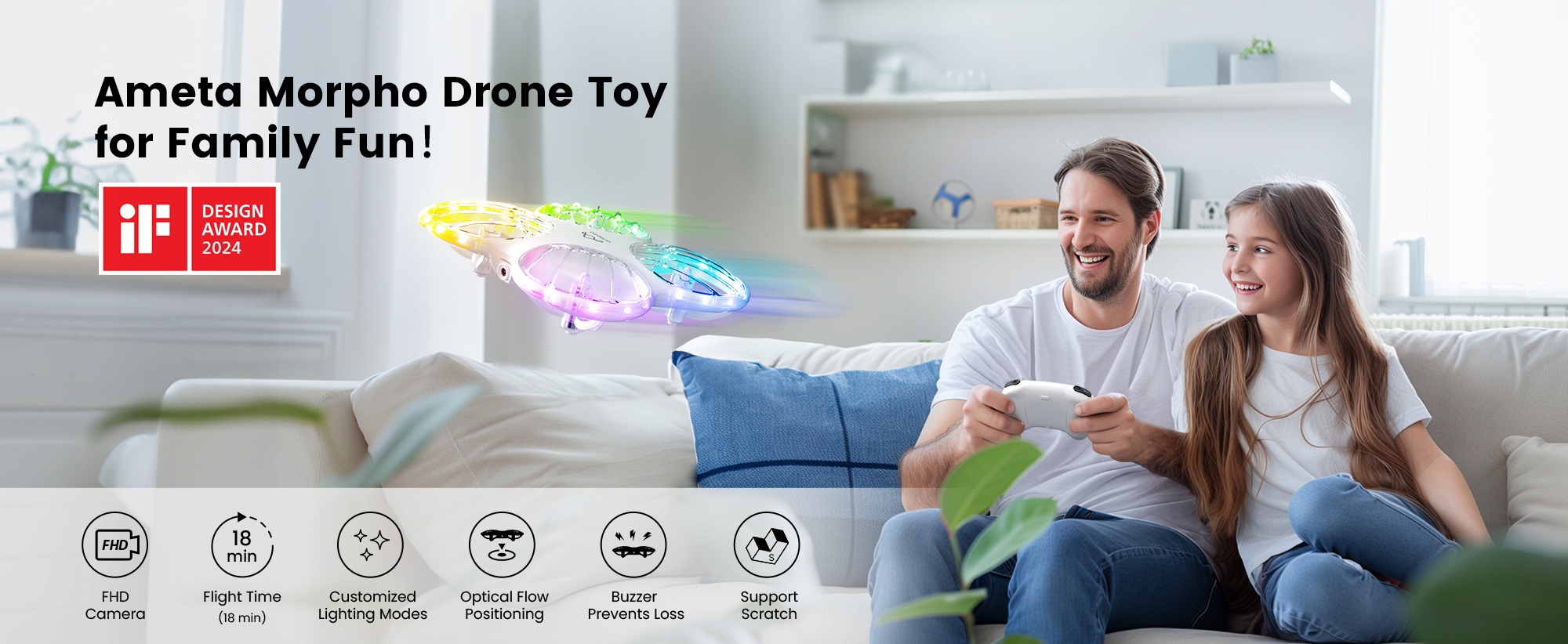 Dron Ameta Morpho jest wyposażony w kamerę HD 1080P, zdolną do rejestrowania wyraźnych i szczegółowych zdjęć i filmów. Dzięki funkcji FPV piloci mogą przeglądać materiał na żywo za pośrednictwem aplikacji i łatwo udostępniać go w mediach społecznościowych.