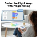 Aplikacja Ameta oferuje moduły STEM, które umożliwiają dzieciom projektowanie różnych wzorów lotów i kreatywne pilotowanie drona. Stymuluje to zarówno radość z zabawy, jak i naukę podstaw technologii i programowania.