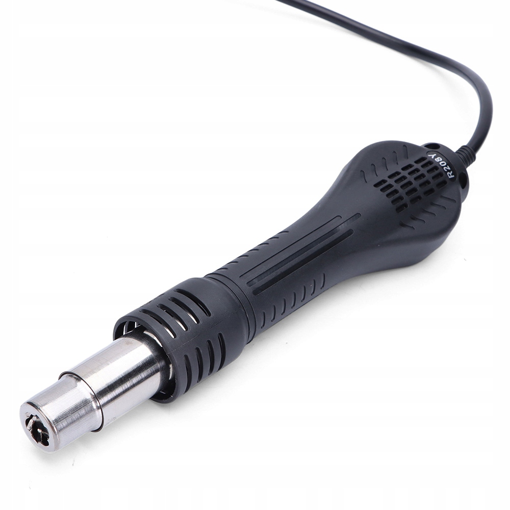 В колбе есть нагревательный элемент на керамическом каркасе, построенный из толстой проволоки защищенного Микка, который защищает от случайного короткого замыкания с корпусом. Нагреватель 700 Вт гарантирует мгновенное нагревание до заданной температуры, что позволяет эффективно работать с элементами электронная и удобная сварка пластиков.