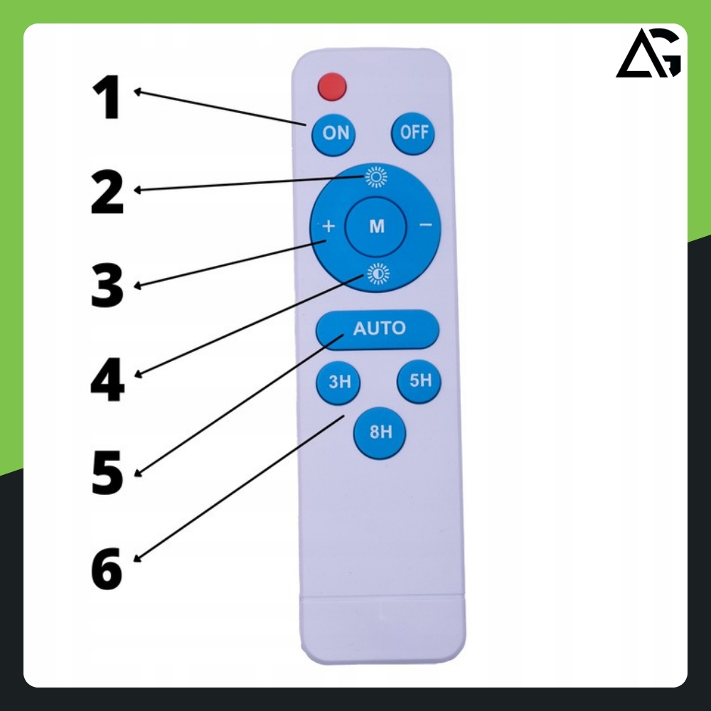1️⃣ ON/OFF: włącza / wyłącza lampę;