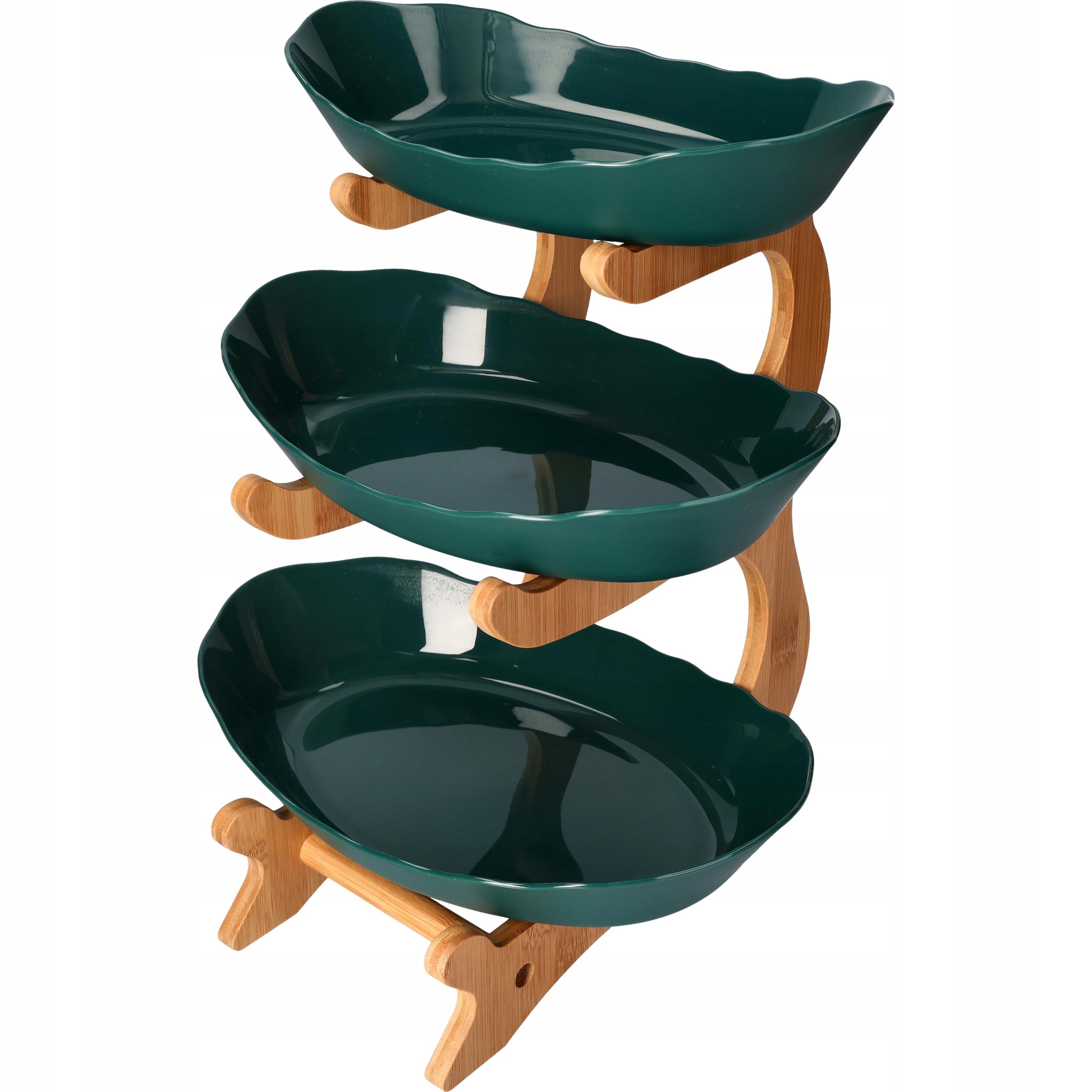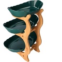 Piętrowa patera wykonana z drewna bambusowego i eleganckich misek w odcieniach morskiej zieleni dodaje elegancji i stylu do każdej aranżacji stołu. Bambusowa konstrukcja wprowadza naturalny, ciepły akcent do wnętrza, podczas gdy eleganckie miski dodają świeżości i nowoczesności.