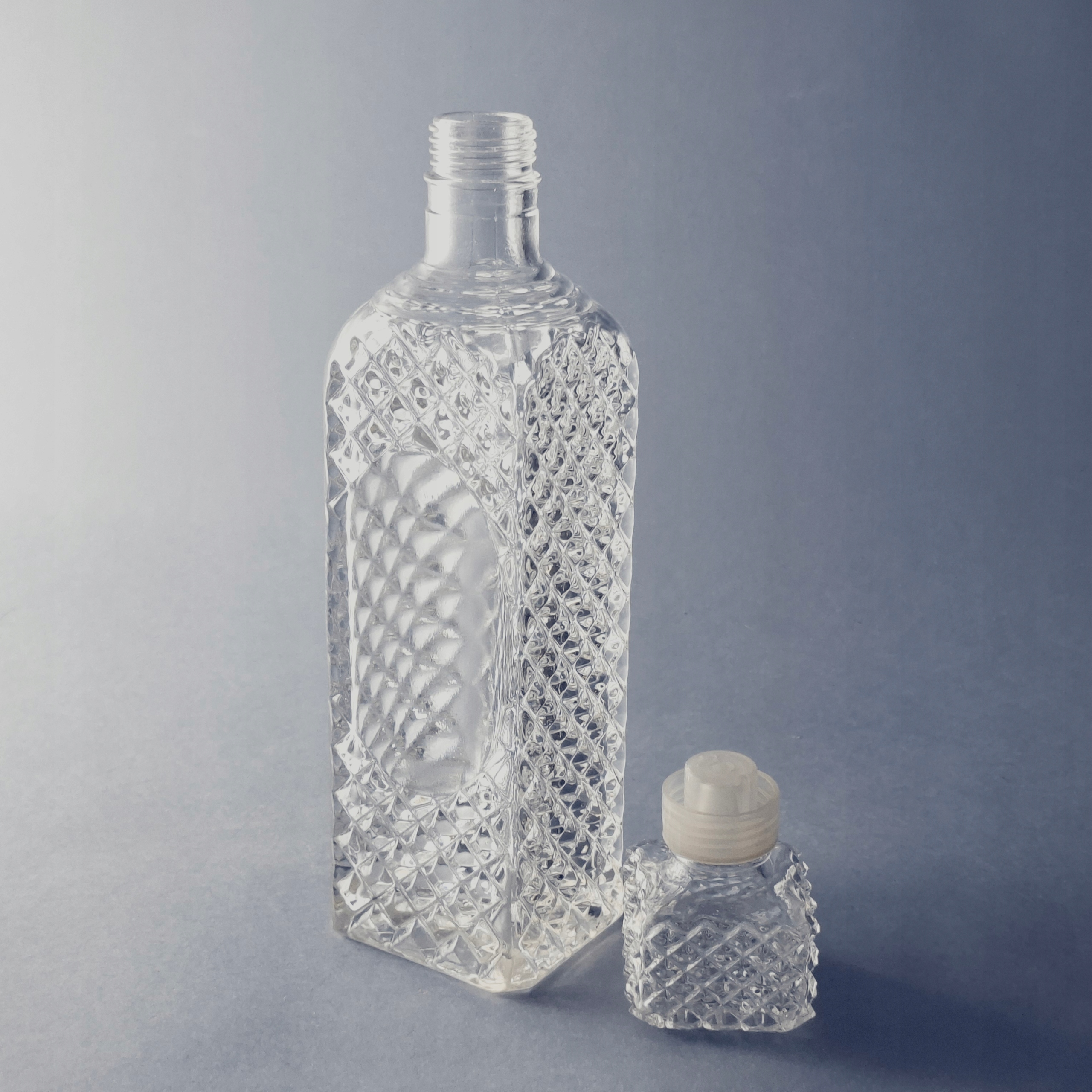 Piękna zakręcana karafka / butla szklana.