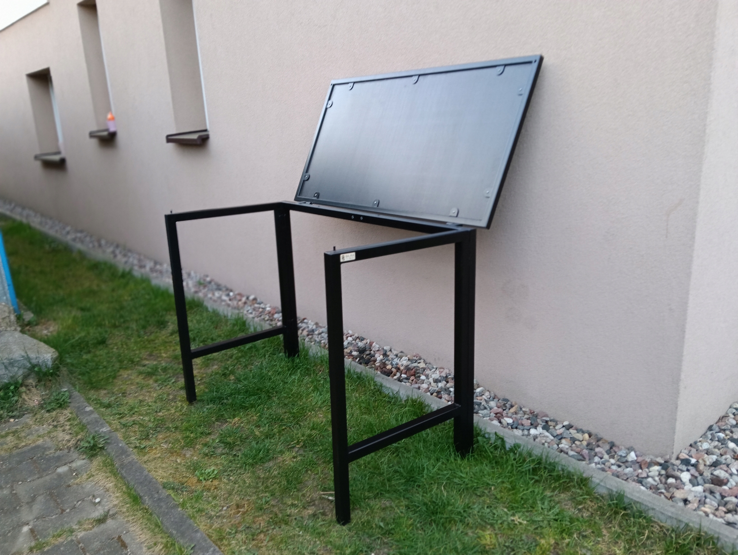 Solidny blat wykonany z spawanej ramy i wpuszczonej antypoślizgowej sklejki o grubości 18 mm gwarantuje nie tylko trwałość, ale także bezpieczeństwo użytkowania. Czarna powłoka malowana proszkowo zapewnia estetyczny wygląd i odporność na warunki atmosferyczne (istnieje możliwość wyboru innego koloru malowania, aby dopasować stół do Twoich preferencji).