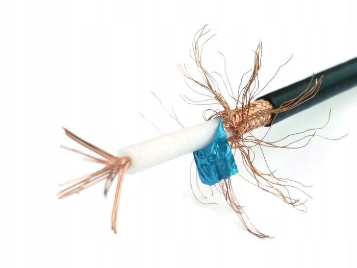 ✴️Przewód współosiowy polskiej produkcji o żyle wielodrutowej miedzianej, izolacji polietylenowej i powłoce polwinitowej, podwójnie ekranowany.
