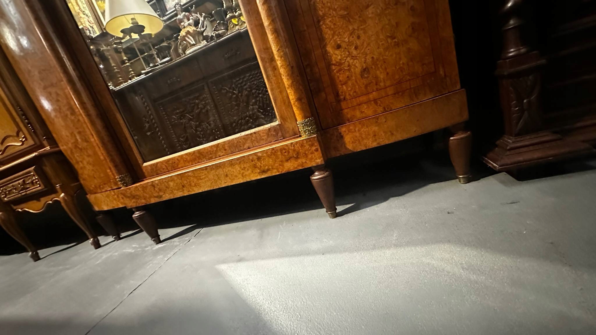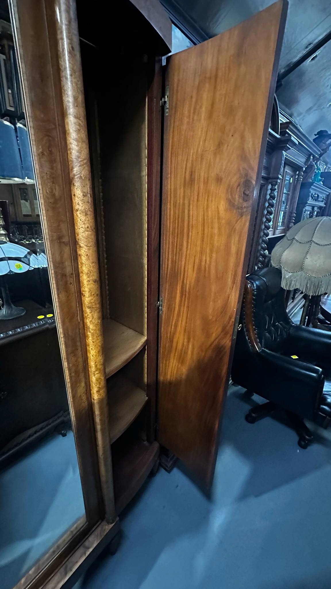 Wyjątkowa, szafa z końca XIX lub początku XX wieku, wykonana z drewna fornirowanego pięknym orzechem typu burl (czeczot).