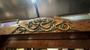 Szafa trzydrzwiowa – środkowe skrzydło z dużym lustrem, boczne drzwi bogato zdobione intarsją z motywem florystycznym. Całość wieńczy kunsztowna korona z ręcznie wykonanymi złoconymi rzeźbieniami przedstawiającymi girlandy, liście i róże. Złocenia pojawiają się również przy kolumnach bocznych.