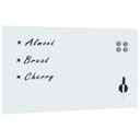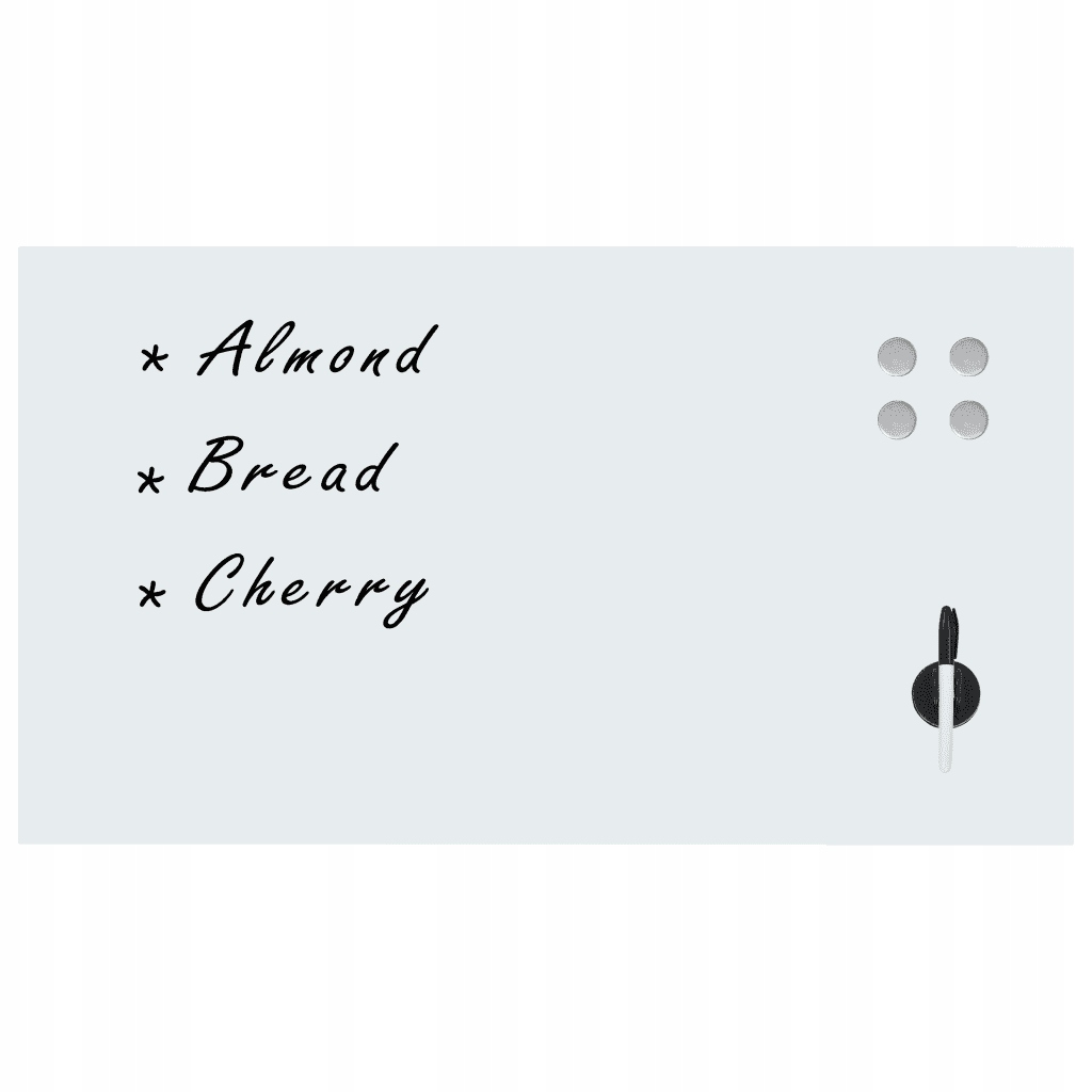 Tablica zawiera bezpieczne szkło hartowane, które jest odporne na osady, zarysowania i wygięcia. Możesz przymocować na niej dokumenty lub notatki za pomocą dołączonego magnesu. Ponadto możesz po niej pisać suchościeralnym pisakiem, który łatwo się ściera przy użyciu dołączonej gąbki. Wymagane akcesoria do montażu na ścianie są również dołączone, dzięki czemu z łatwością przymocujesz tablicę na dowolnej ścianie w swoim domu, biurze lub w szkole.