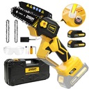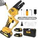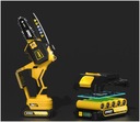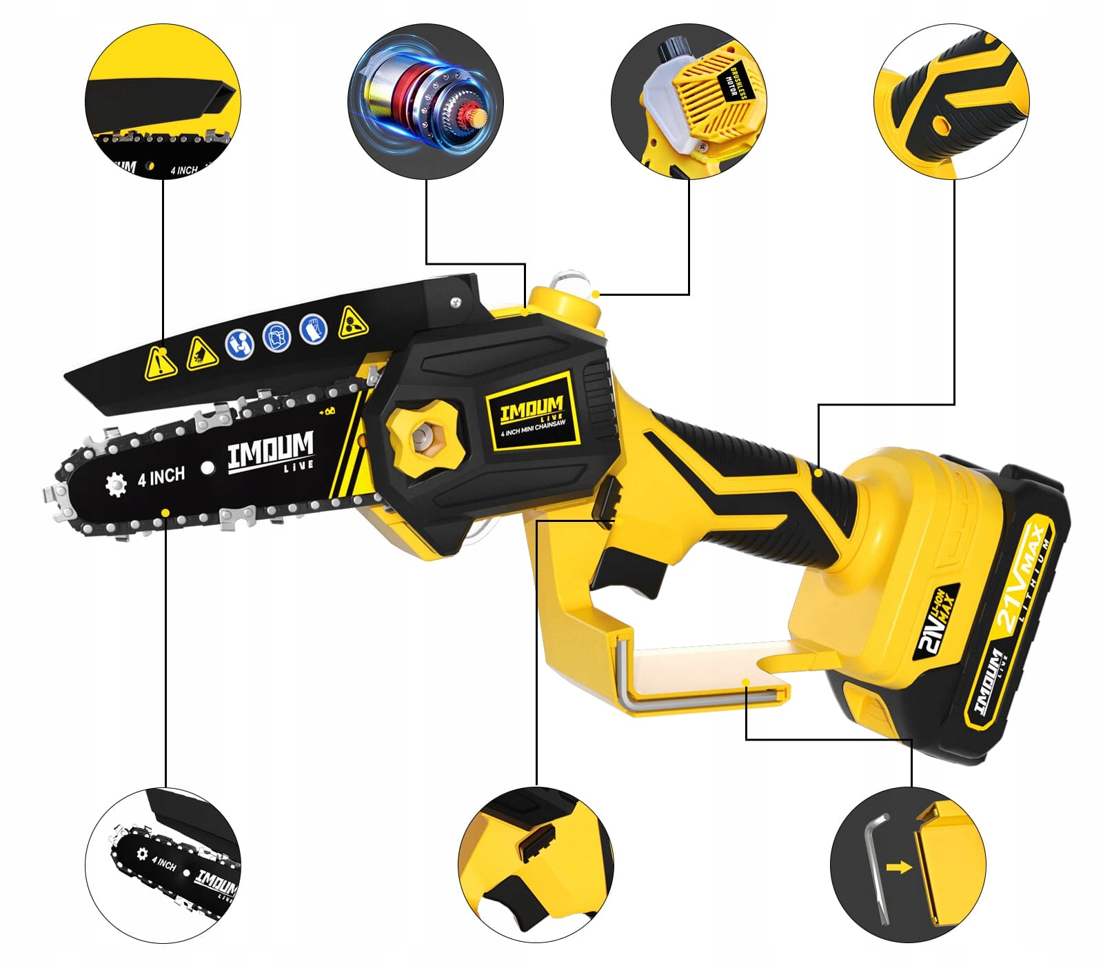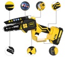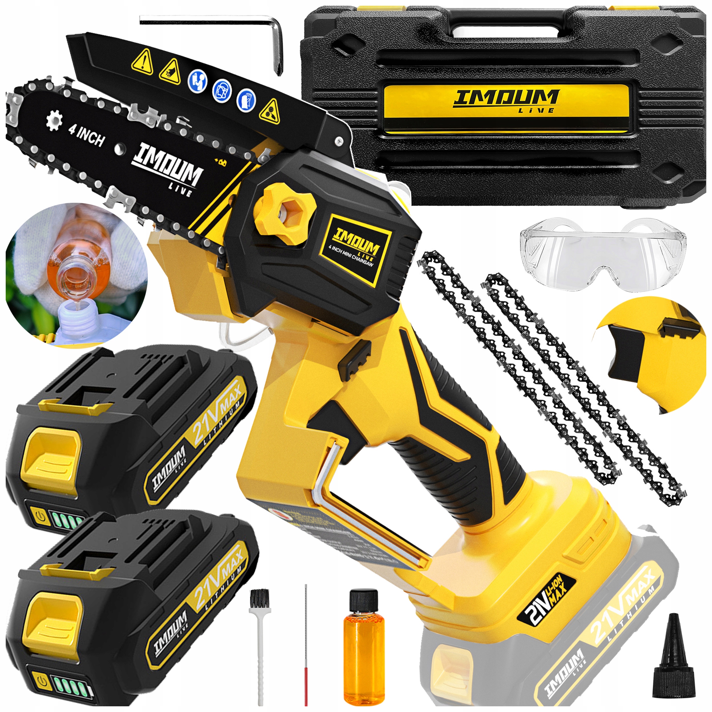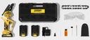 W walizce oprócz piły znajdują się dwa akumulatory, ładowarka, śrubokręt, 2x łańcuch, prowadnica łańcucha, osłona prowadnicy, ostrzałka do łańcucha, pędzel do czyszczenia, lejek do nalewania oleju, klucz nasadowy, okulary ochronne, instrukcja obsługi w języku polskim.