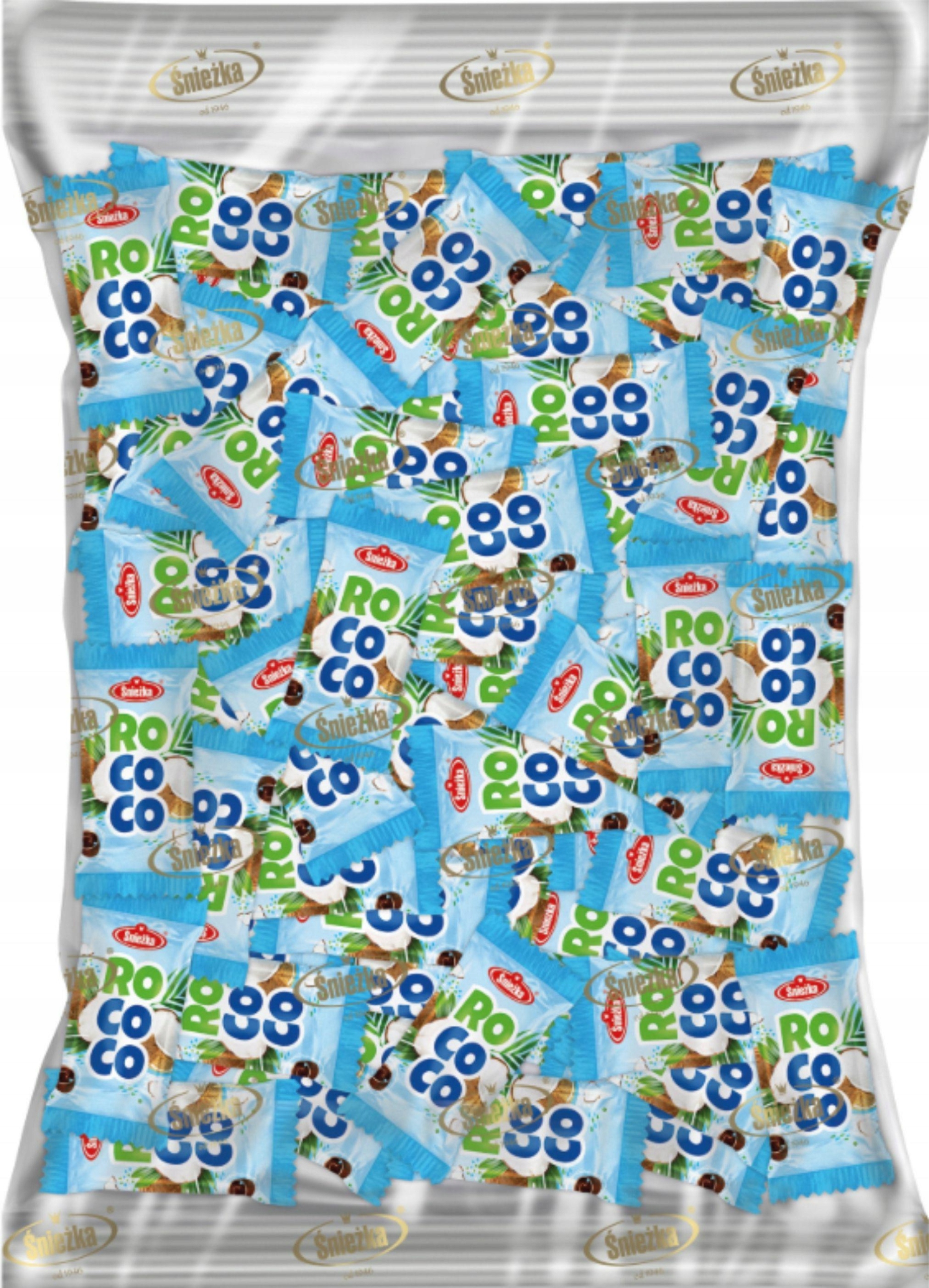 SKŁADNIKI: cukier, wiórki kokosowe 18%, polewa kakaowa, kakao o obniżonej zawartości tłuszczu, emulgator, lecytyny z soi , rzepaku, stabilizator E492, tłuszcz roślinny palmowy, srewatka w proszku z mleka, syrop glukozowy, aromat, substancja utrzymująca wilgoć inwertaza.