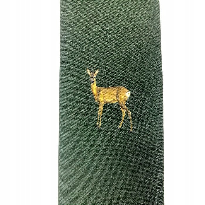 Zielony krawat z motywem kozławykonany jest z wytrzymałej tkaniny polietynowejo szerokości 8 cm. Ten elegancki dodatek do garderoby wprowadza nutę natury do Twojego stylu.