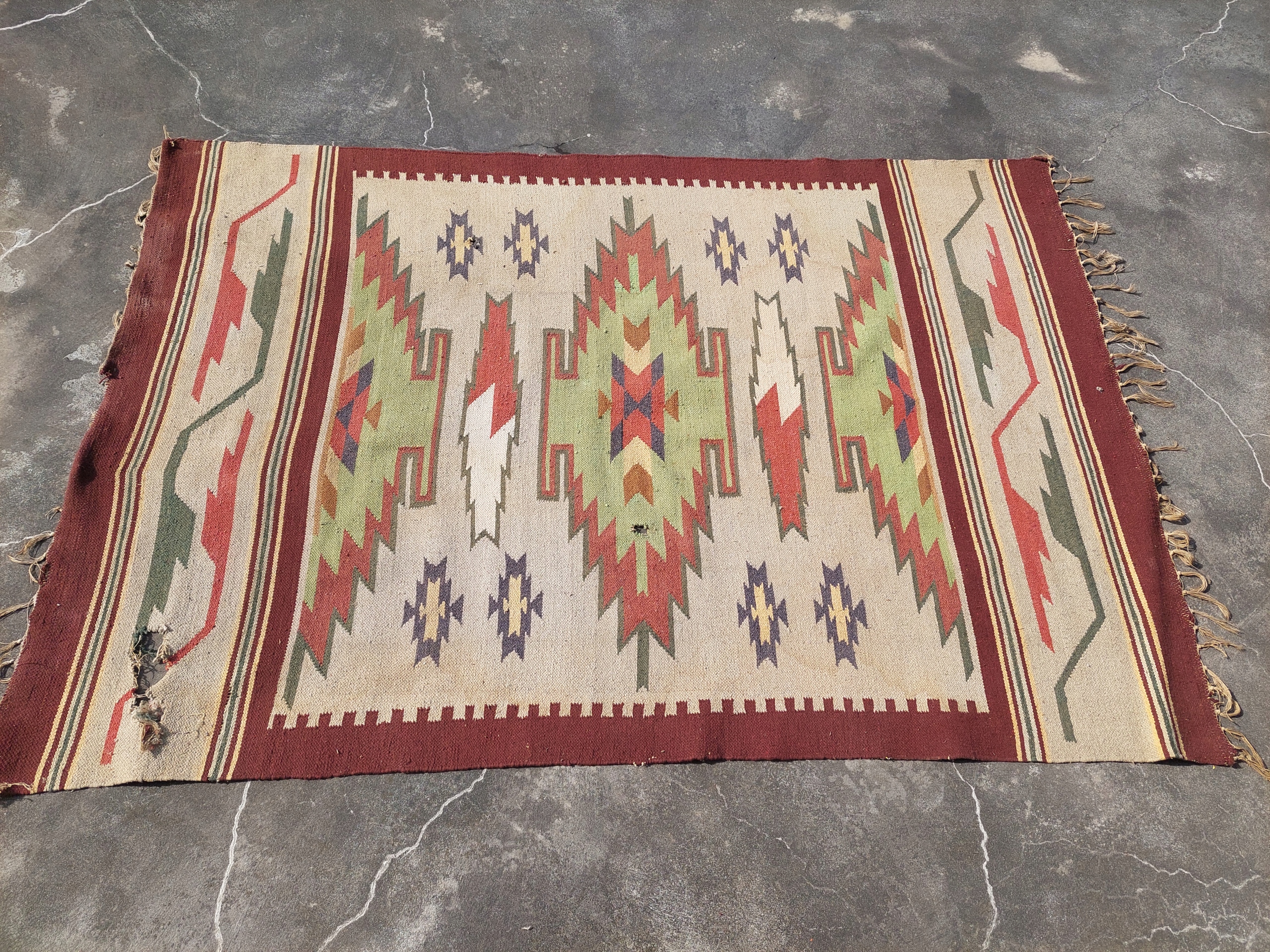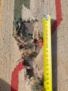 Kilim posiada trzy rozdarcia tkaniny, jedno większe i dwa mniejsze, brak kilku frędzli.