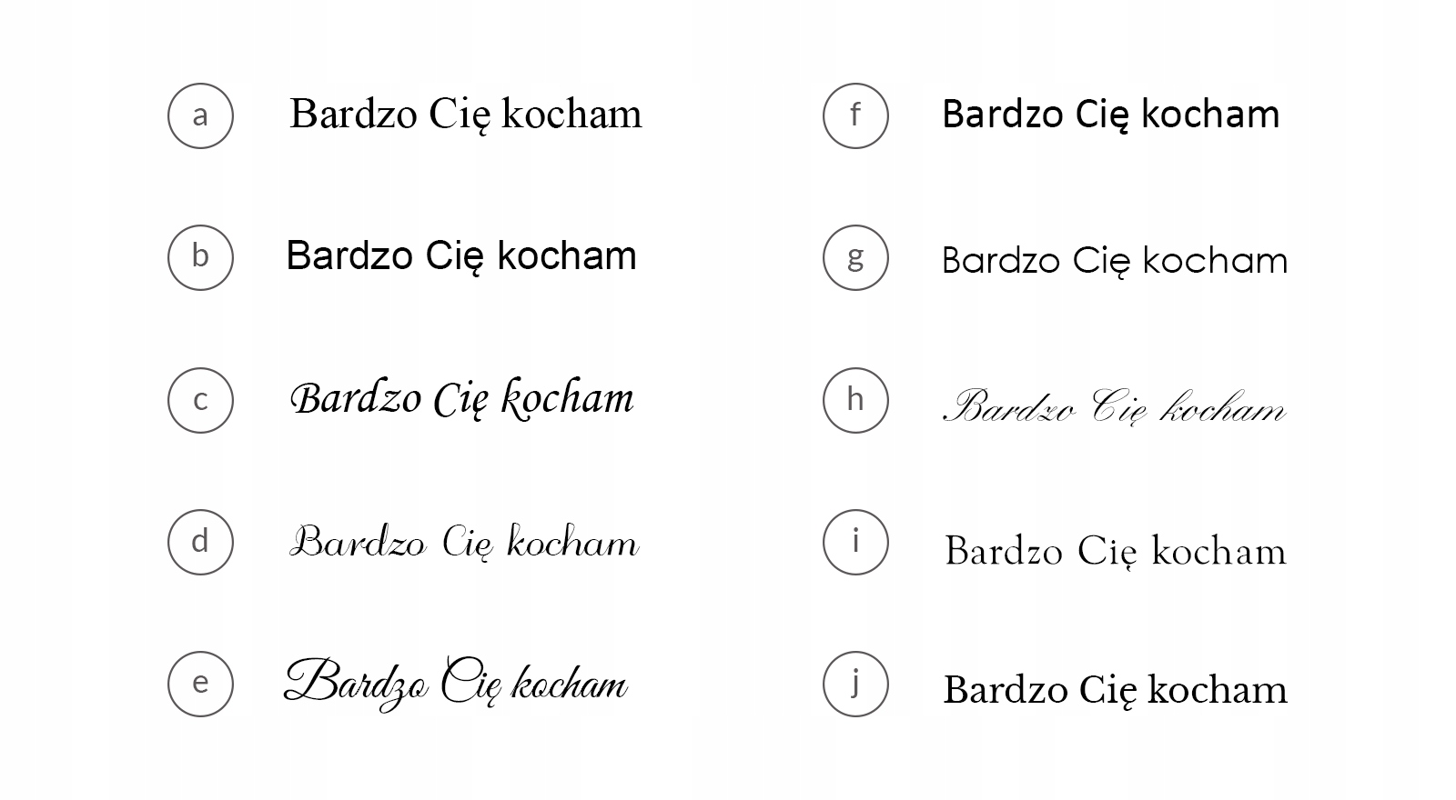 Wzór zamówienia np.: Blaszka "06", dedykacja czcionka "C", podpis (imię) "A”.