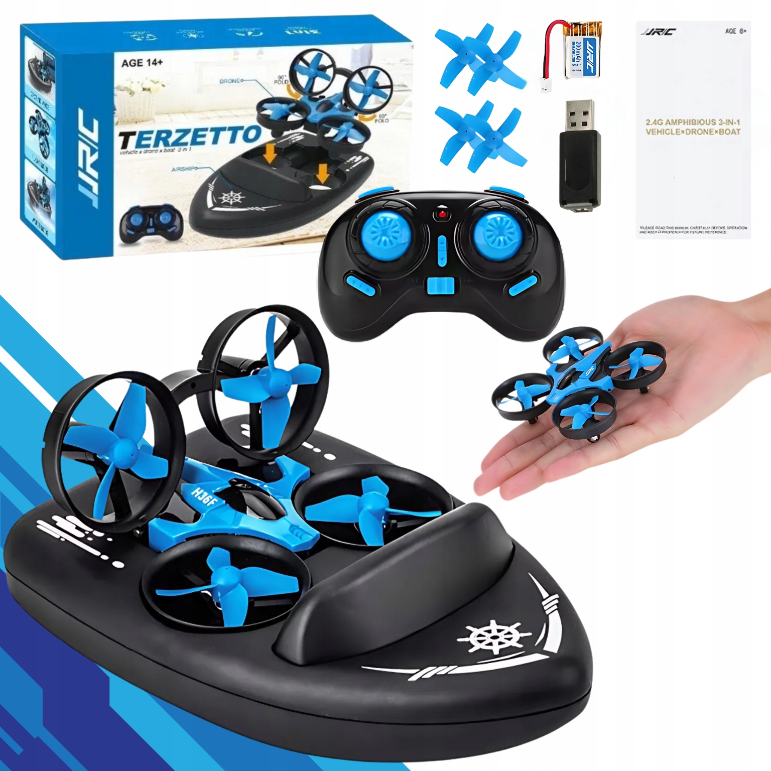 ➡️ 3w1: Działa jako dron, łódź i pojazd lądowy – szybka transformacja bez narzędzi.