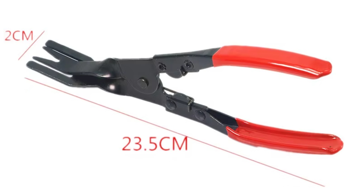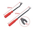 W zestawie ze szczypcami znajdują się 2 ściągacze o różnych wielkościach, które służą do bezpiecznego rozpinania spinek tapicerskich używanych w łączeniu elementów wnętrza i karoserii samochodowej.