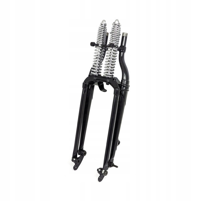 Widelec typu Springer w stylu OEM, idealny dla motocykli 42-43 WLC oraz Servi-Car. Posiada czarne nogi przednie oraz czarną konstrukcję, co nadaje mu elegancki i klasyczny wygląd. Wbudowane chromowane sprężyny zapewniają nie tylko estetykę, ale także doskonałą amortyzację, co zwiększa komfort jazdy. Kąt nachylenia (rake) wynosi inline, co sprawia, że widelec jest stabilny i łatwy w prowadzeniu. Standardowa długość sprawia, że jest to zamiennik, który łatwo dopasujesz do swojego motocykla. Wybierz ten produkt, aby przywrócić oryginalny charakter swojego motocykla i cieszyć się jazdą na najwyższym poziomie.