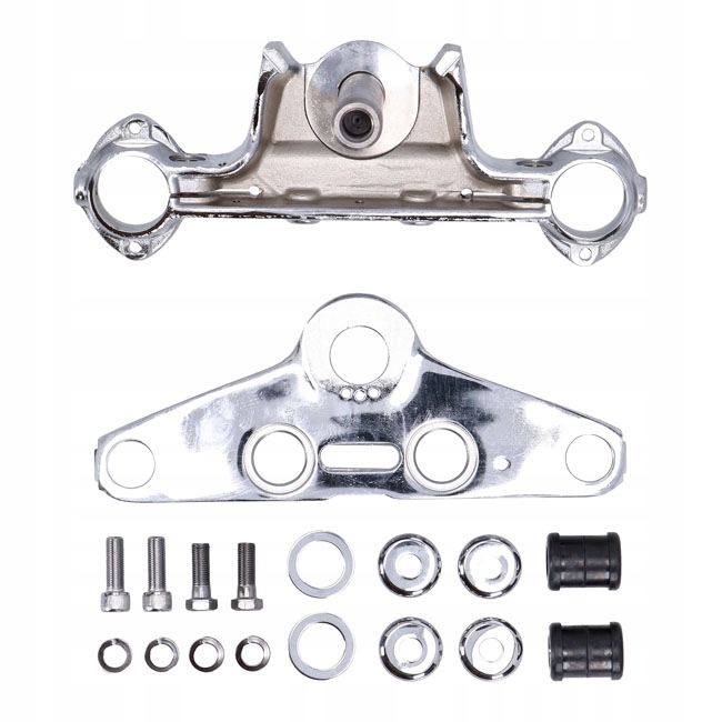 Triple trees o średnicy 41mm, wykonane w stylu OEM, idealne jako zamiennik dla modeli Harley-Davidson FL i FLH z lat 1949-1984. Produkt pasuje do oryginalnych osłon dolnych oraz standardowych opraw świateł. Wbudowany kąt negatywny 2 stopni poprawia prowadzenie, zapewniając lepszą stabilność i manewrowość. Akceptuje nowoczesne tłumiki kierownicy i uchwyty o standardowym rozstawie 89mm. Wysokiej jakości chromowana powłoka dodaje elegancji i trwałości. Numer referencyjny OEM: 45700-60A. Idealny wybór dla miłośników klasycznych motocykli, którzy pragną przywrócić oryginalny wygląd i funkcjonalność swojego pojazdu.