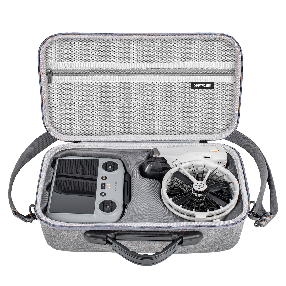 【Zoptymalizowana przestrzeń przedziału】Zaprojektowany, aby pomieścić Flip Drone i 2 inteligentne baterie lotnicze, ten futerał zawiera również wewnętrzną kieszeń zapinaną na zamek idealną do przechowywania mniejszych akcesoriów, takich jak kable PD typu C do typu C, śrubokręty, zapasowe śruby śmigła, kable RC, dodatkowe śmigła i wiele innych.