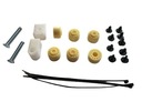 W skład zestawu wchodzi 6 rolek, 2 łożyska prostokątne, 2 śruby mocujące łożyska, kołki oraz trytki.