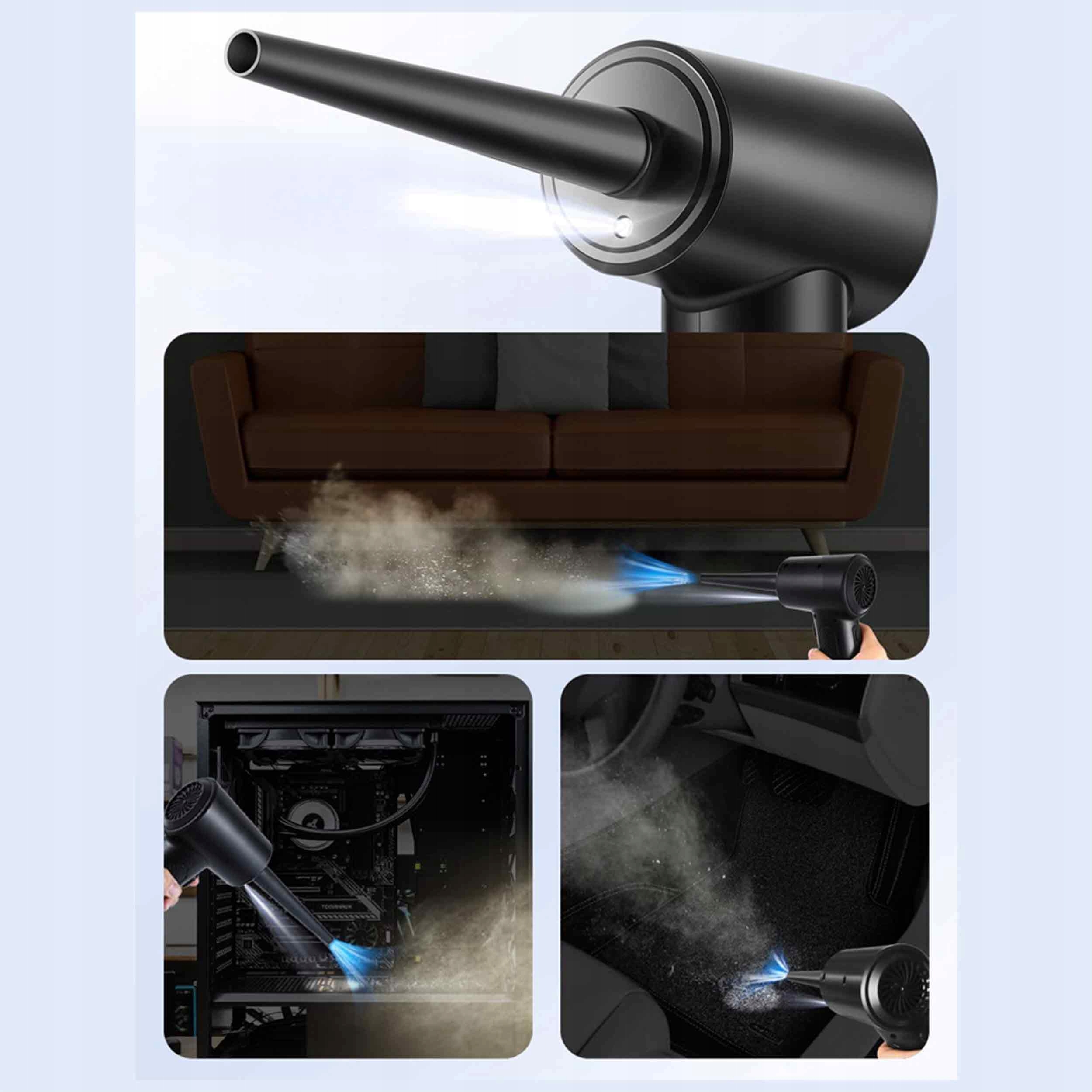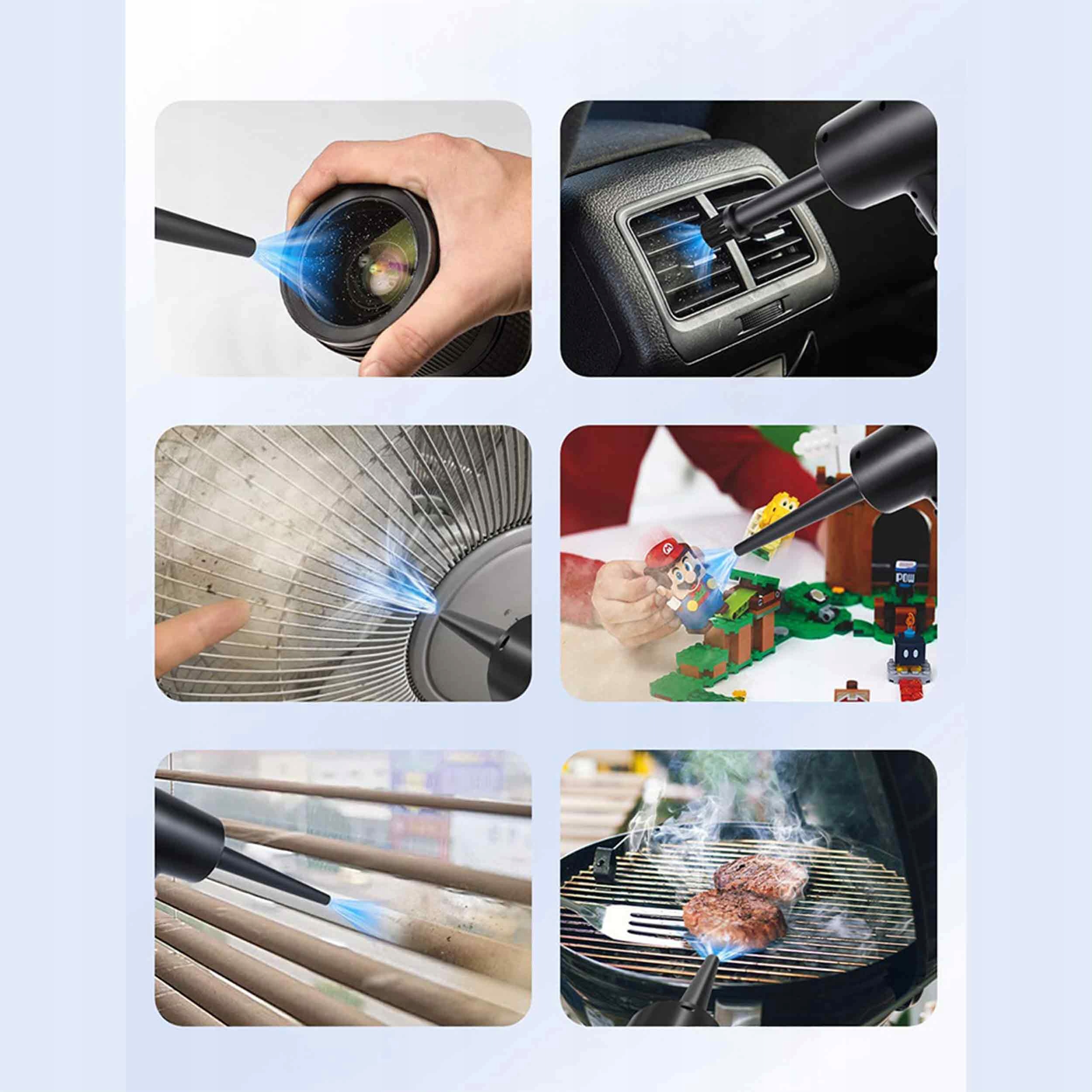 Dmuchawa generuje silny strumień powietrza, który z łatwością usuwa kurz, okruchy i inne zanieczyszczenia nawet z trudno dostępnych miejsc. Jest znacznie skuteczniejsza od klasycznych puszek ze sprężonym powietrzem, a przy tym ekologiczna i wielokrotnego użytku. Nie musisz już wydawać pieniędzy na jednorazowe produkty – teraz masz trwałe i niezawodne narzędzie zawsze pod ręką!